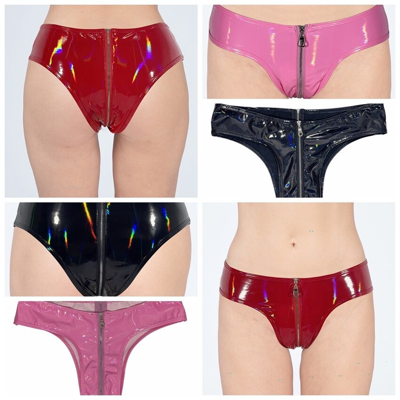 Womens Glossy Low Rise Briefs Solid Color Elastic Waistband Panties.