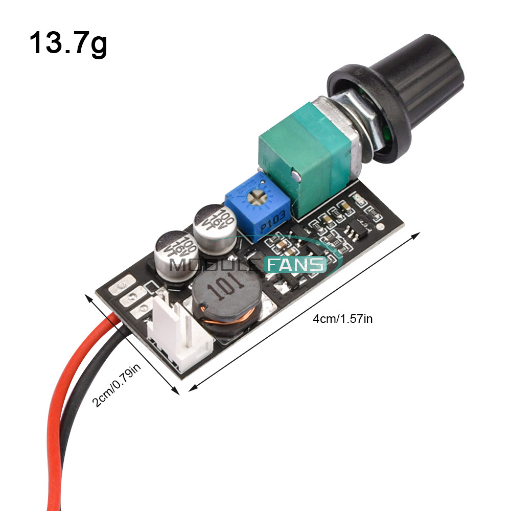 Pay attention to the positive and negative poles and the power supply voltage (reverse connection will damage the board), it can be used after the power supply and fan are connected, the potentiometer is turned off counterclockwise to the end, and the clockwise end is the maximum output