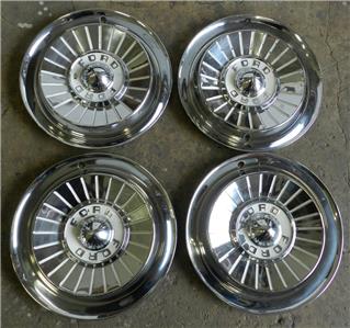 NOTE: These hubcaps are used and over 50 years old and they have signs of usage including, nicks, scratches, faded paint, small dents, road rash and wear as shown in the pictures.