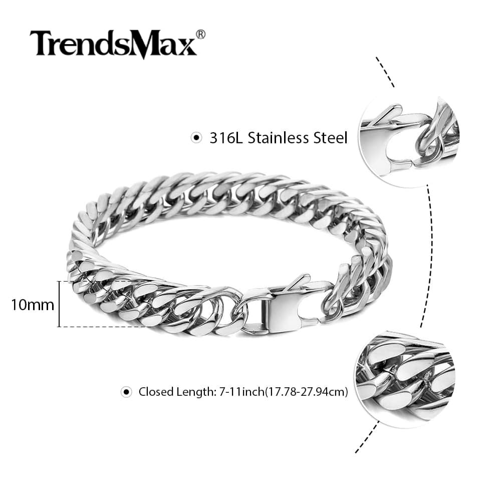 10mm 8/9/10" Double Curb Rombo Link 316L Stainless Steel Bracelet for Unisex