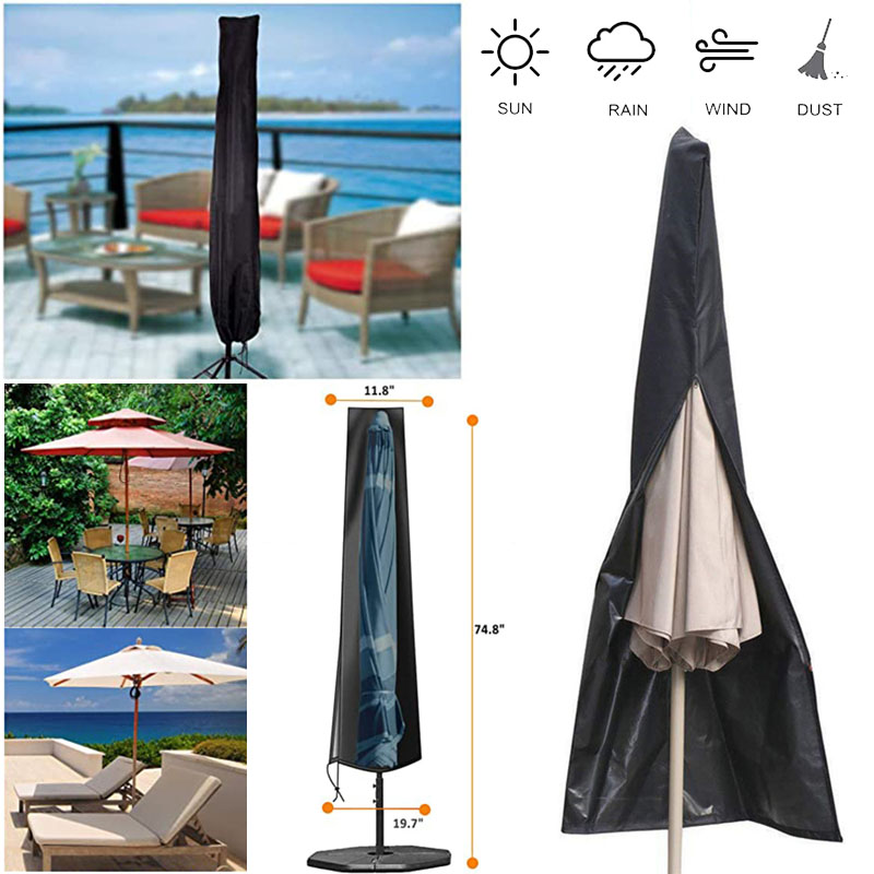 ☞☞Compatible size: 190cm H x 30cm W (top) / 50cm W (bottom). Suitable for eccentric market umbrellas with a diameter of 9-11 feet. Zipper length 75CM.