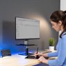 Black Universal Tabletop Monitor Riser (STAND-V000SB) from VIVO. Set your display at a comfortable and optimal viewing height with this contemporary stand made of premium steel and aluminum. Raising your monitor to a proper ergonomic viewing position creates better posture which can help reduce neck and back strain computer users get from sitting at a desk for long hours. The top is covered with a padded anti-slip silicone surface and holds LCD monitors, TVs, audio equipment, printers, streaming devices, and other desired items. The heavy-duty riser supports weights up to 33 lbs and features a spacious 12" x 8" surface. Padding beneath the base offers additional stability and shields surfaces from scratching. The entire platform is height adjustable from 4.5" and 6.5" off the desk with a built-in spring buffer. Once received, this tabletop riser is easily assembled and ready for use in a matter of minutes.