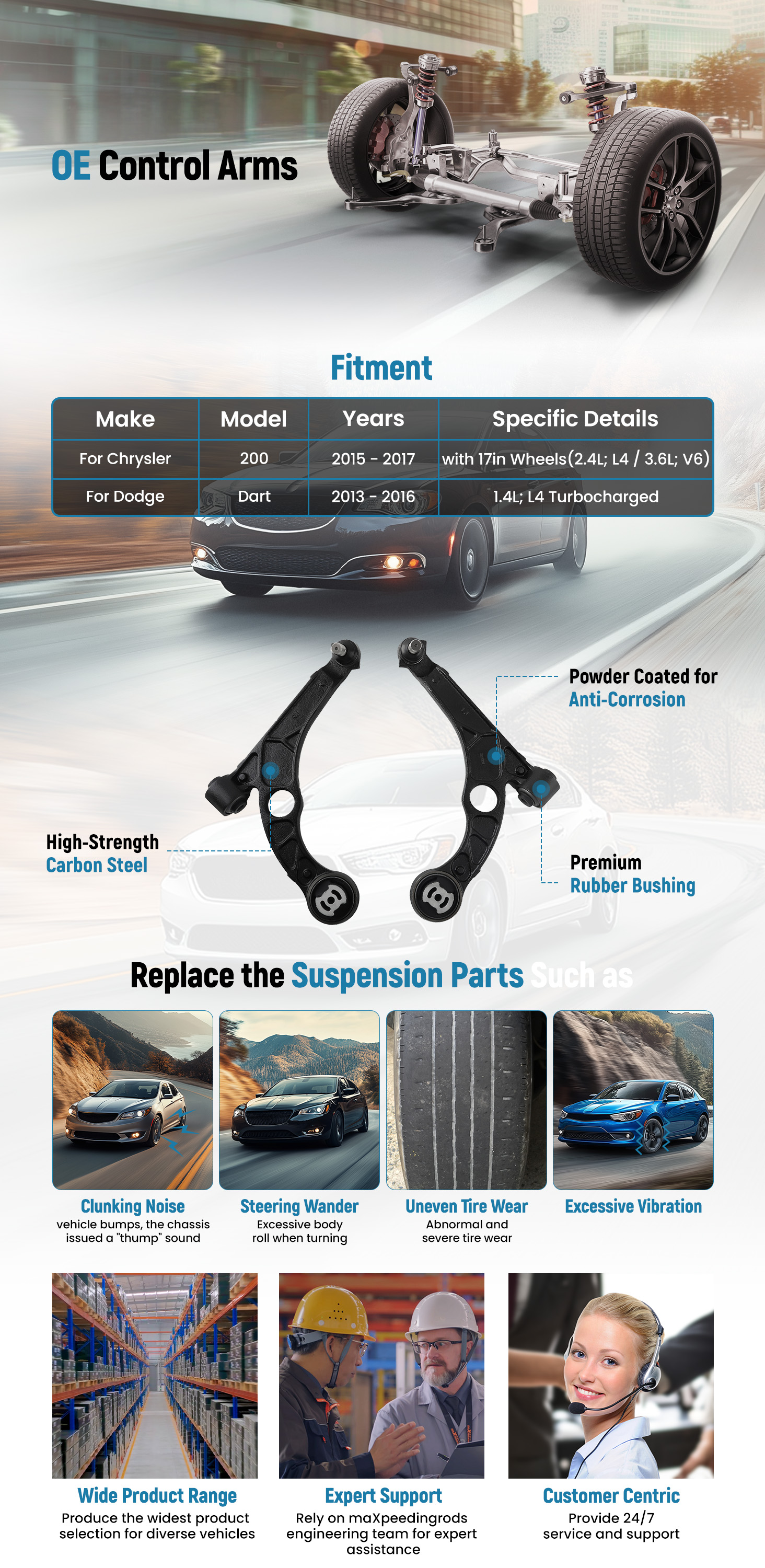 - The control arms are manufactured using advanced processes and premium coatings to maximize their durability and corrosion resistance