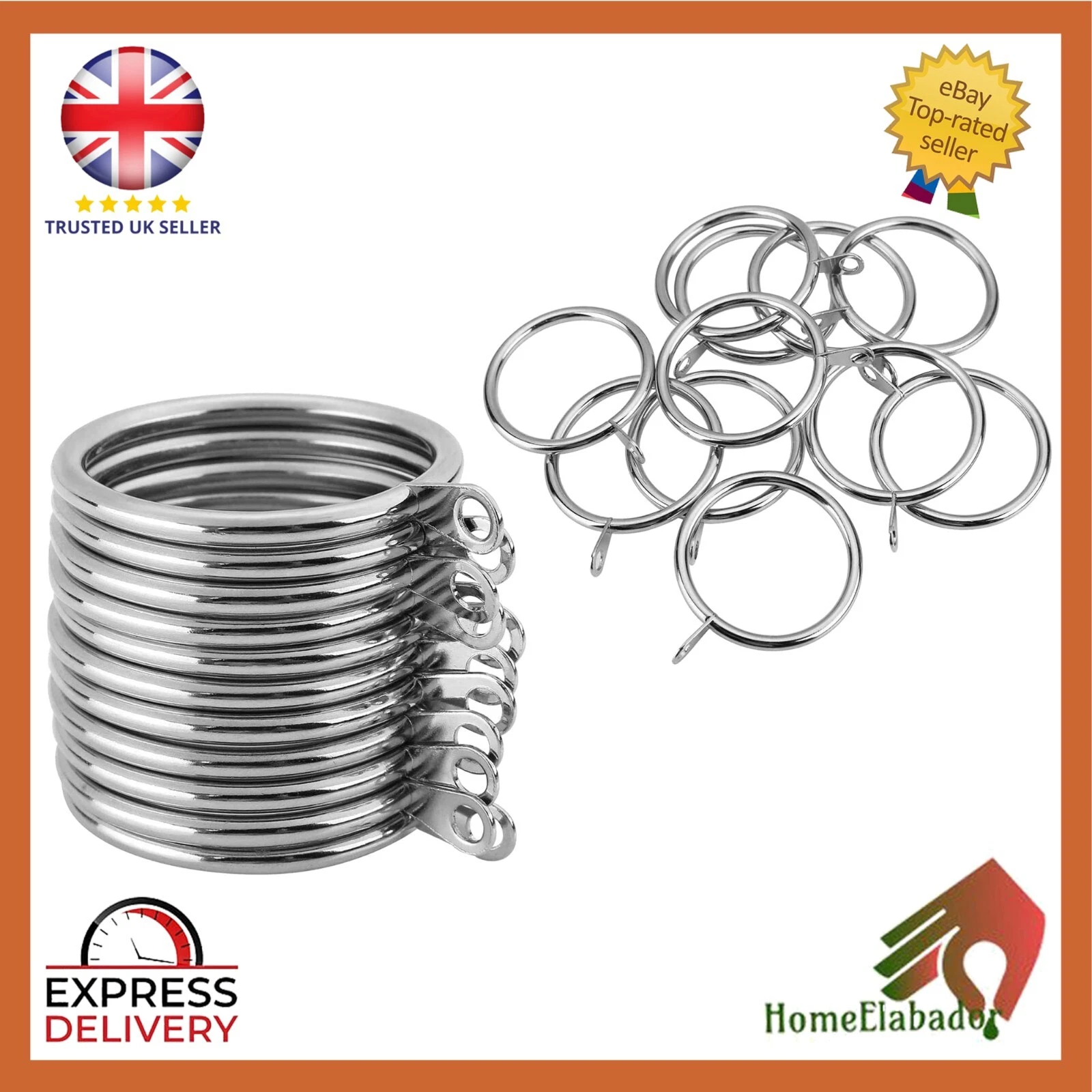 Large Silver Curtain Pole Rings 40mm Strong Metal Curtain Hanging Rings Sliding