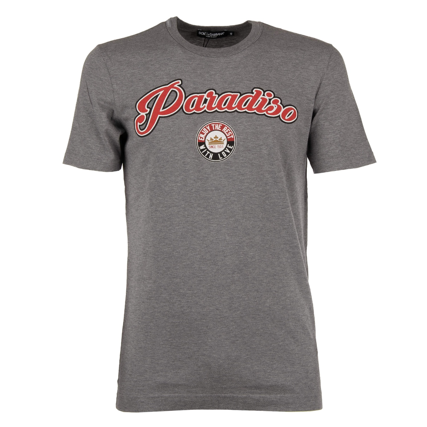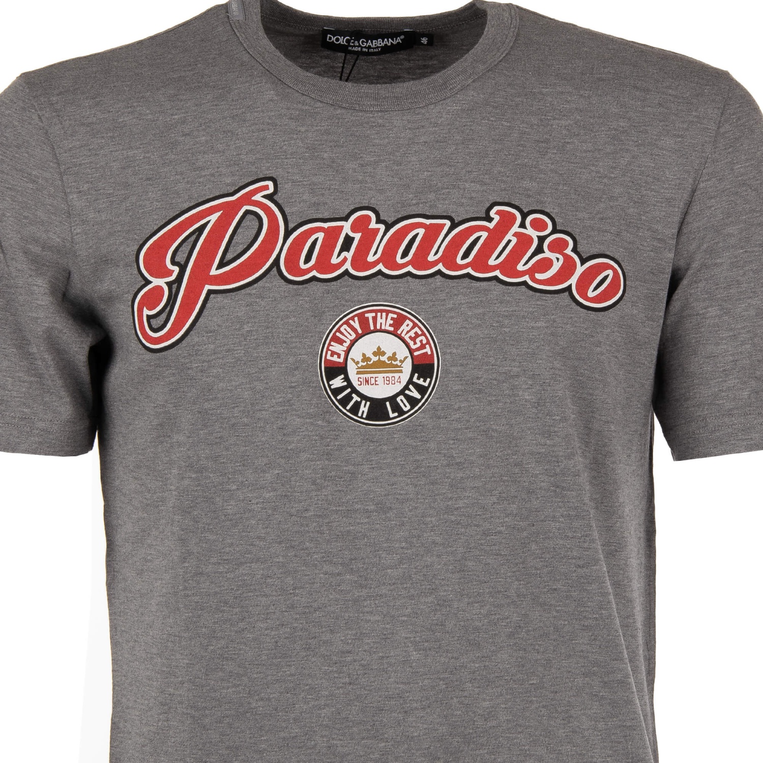 - Cotton T-Shirt with Paradiso print and logo sticker by DOLCE & GABBANA