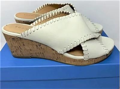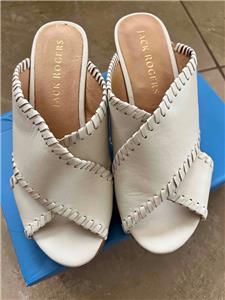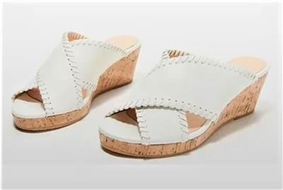 Jack Rogers Sloane Off White Mid-Heel Wedge Criss-Cross Sandals