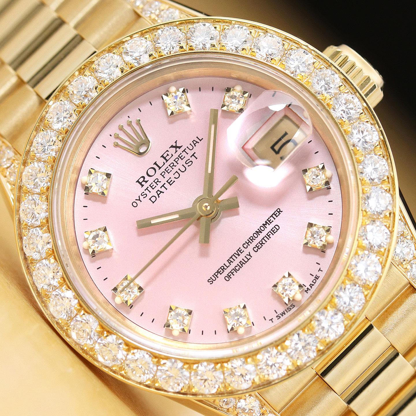 ROLEX LADIES DATEJUST 69178 18K YELLOW GOLD PINK FACTORY DIAMOND 1.5 CT BEZEL WATCH