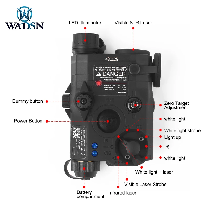 WADSN LA-5C UHP PEQ15 IR Laser Green Blue Red Dot Tactical for 20mm Rail White LED Flashlight Hunting Airsoft
