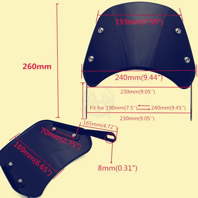 Retro Motorcycle 6.5"-9.45" Headlight Windshield Wind Deflector Windscreen Universal for Harley Honda Yamaha Instrument Visor.