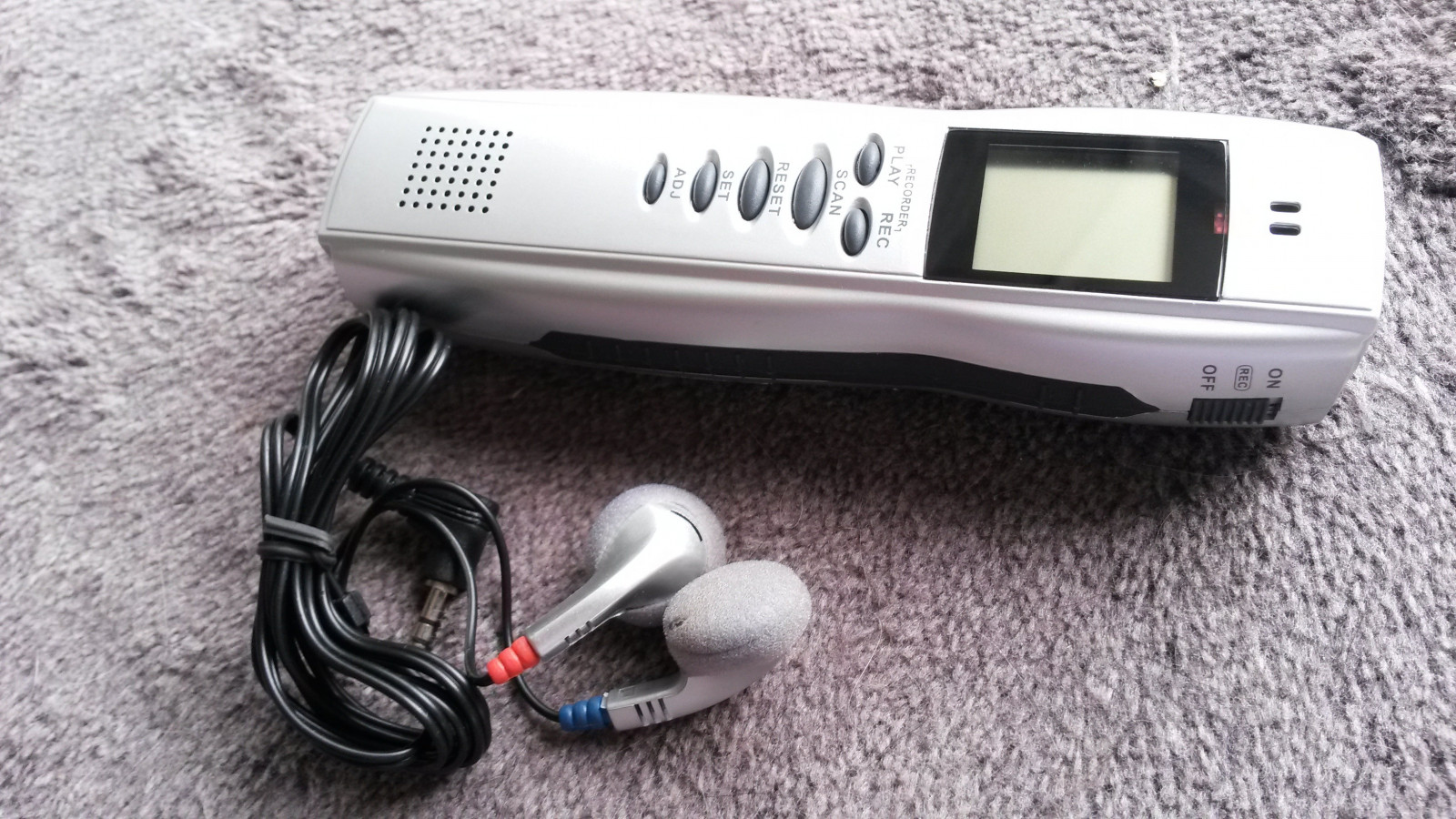 Kleines, sehr handliches DIKTIERGERÄT für Kurzmitteilungen mit eingebautem FM-UKW RADIO, Wecker, Zeit-und Datumsanzeige