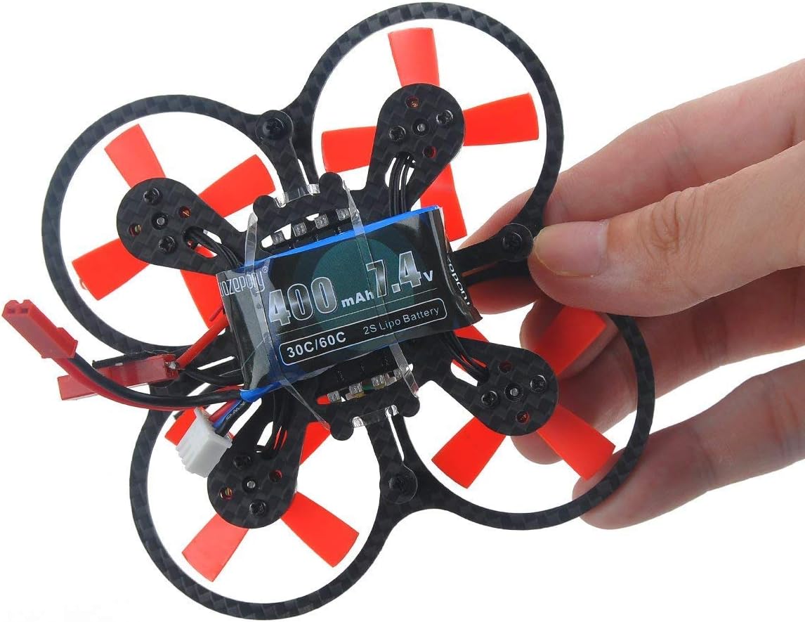 The interface of the 400mAh 2S battery is JST, so you can easily connect your micro FPV racing drone quadcopter | This 2S 400mAh Lipo battery weighs about 22g with small size of 1.5 * 0.75 * 0.75 inches | It is suitable for 30-60c discharge and can extend the duration of 30 seconds under steady-state flight conditions. |