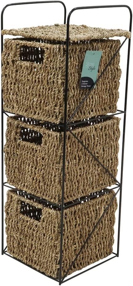 Seagrass Woven 3 Drawer Storage Tower Storage Unit Basket Storage Shelf