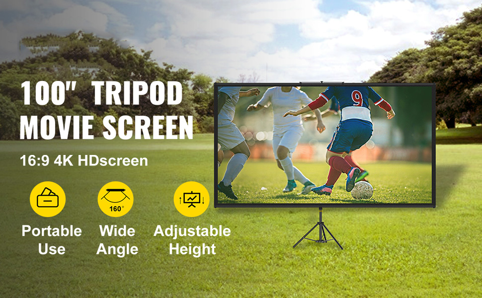 Our projection screen portable features 16:9 4K HD and a 160-degree viewing angle, providing clear and vivid imagery. You will enjoy the beautiful movies, pictures, games and spend more time with your family and friends. The projector screen stand is height adjustable to meet your diverse needs. With an aluminum tripod and wrinkle-free polyester surface, this video screen is ideal for home theater, meeting room, weddings, and even outdoors like camping and backyard movie night.