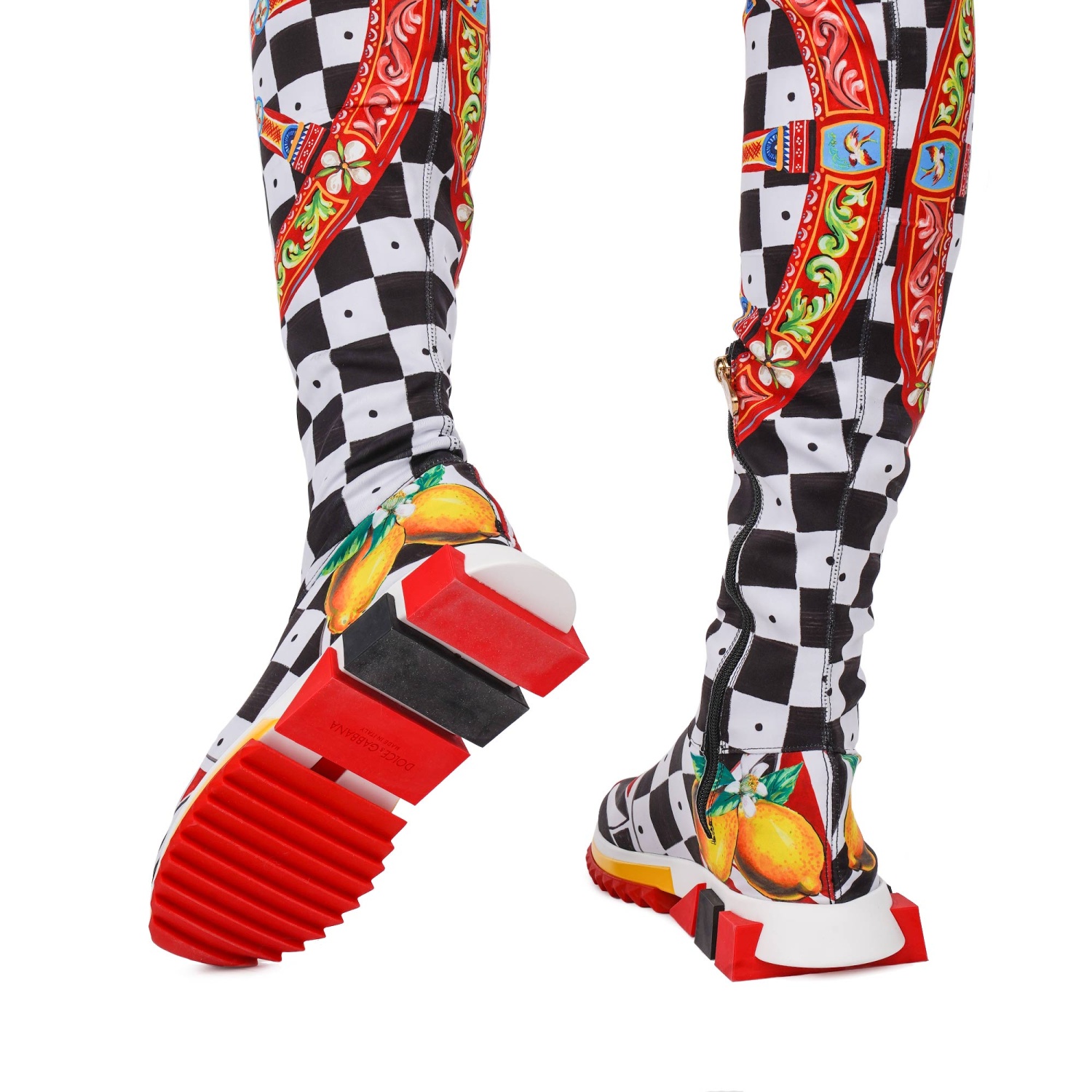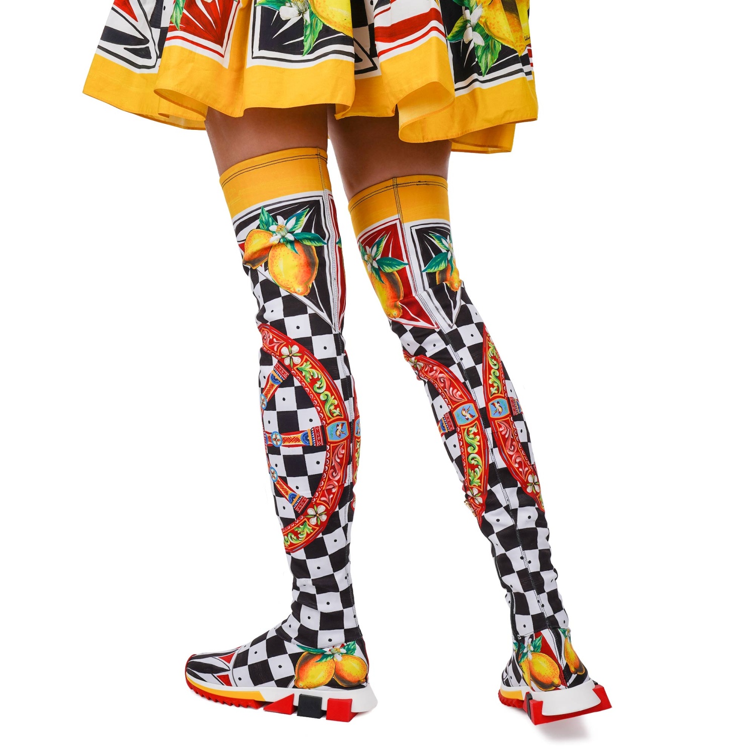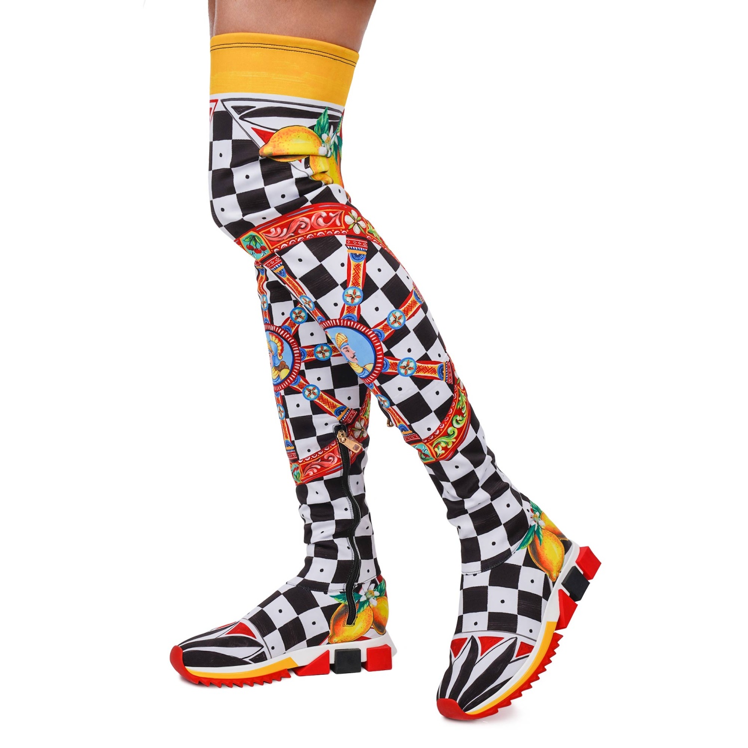 - Neopren Sneaker Boots SORRENTO with Carretto and Lemon Print in red, yellow, black and white by DOLCE & GABBANA