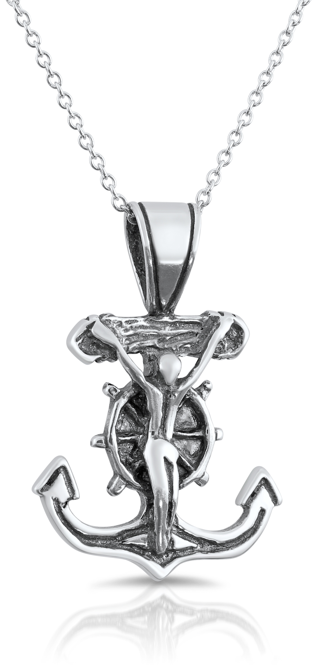 TILO Jewelry 925 Sterling Silver Oxidized Mariner Crucifix Anchor Pendant Chain Necklace, Mariner Charm Pendant with Adjustable Cable Link Chain 16"-18" Women, Girls, Men, Unisex