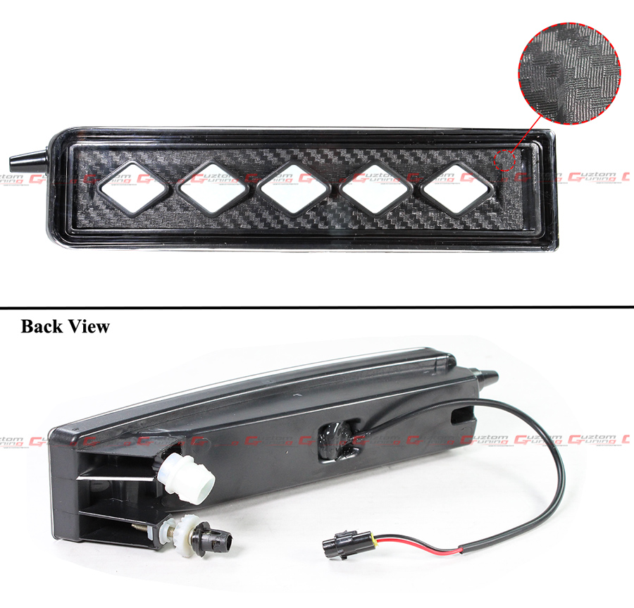 - Clear Lens Diamond Shape White Light With Carbon Fiber Look Housing.