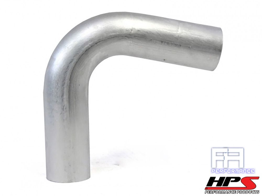 HPS 3" 110 Degree Bend 6061 Aluminum Tubing 16 Gauge with 6" Leg Length and 3" Center Line of Radius is ideal for intake, cooling systems and turbo intercooler piping setup because 6061 aluminum is the most popular and versatile alloy, and is the least expensive of the heat treatable aluminum alloys. HPS 3" (76mm) 110 Degree Bend aluminum round tubing is sold in the T6 condition, ideal for sawing, machining, sanding, and polishing. The 110 Degree Bend aluminum tubing elbow can be polished, but due to the softness of the aluminum, care must be taken not to remove too much material, especially in the area near any welds. All aluminum tubing sold by HPS are made in the USA.