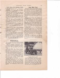 Age: 1913 - White 1 1/2 Truck with Wireless Radio photo and short article