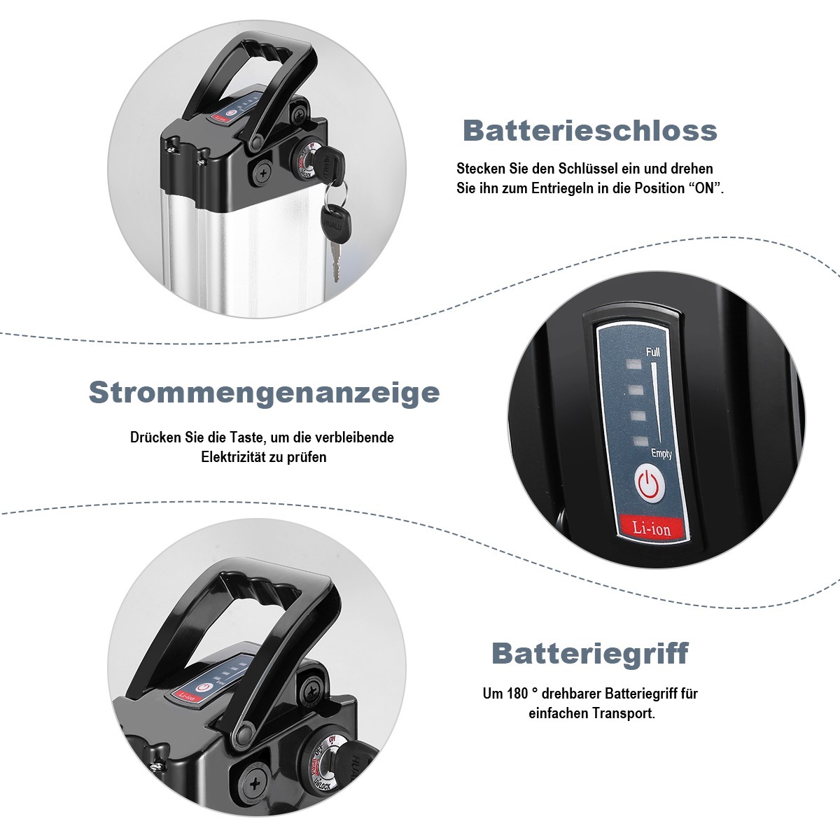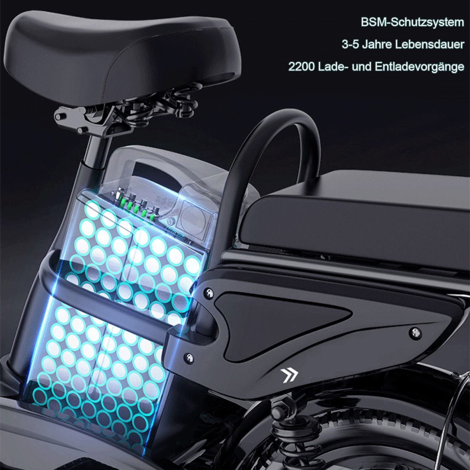 Sûr à utiliser : construit selon les normes testées les plus élevées. Si le moteur est surchargé, le système s'éteint automatiquement pour protéger les composants techniques contre les dommages. La batterie est entièrement scellée et conçue pour durer toute la journée, même sur des routes boueuses.