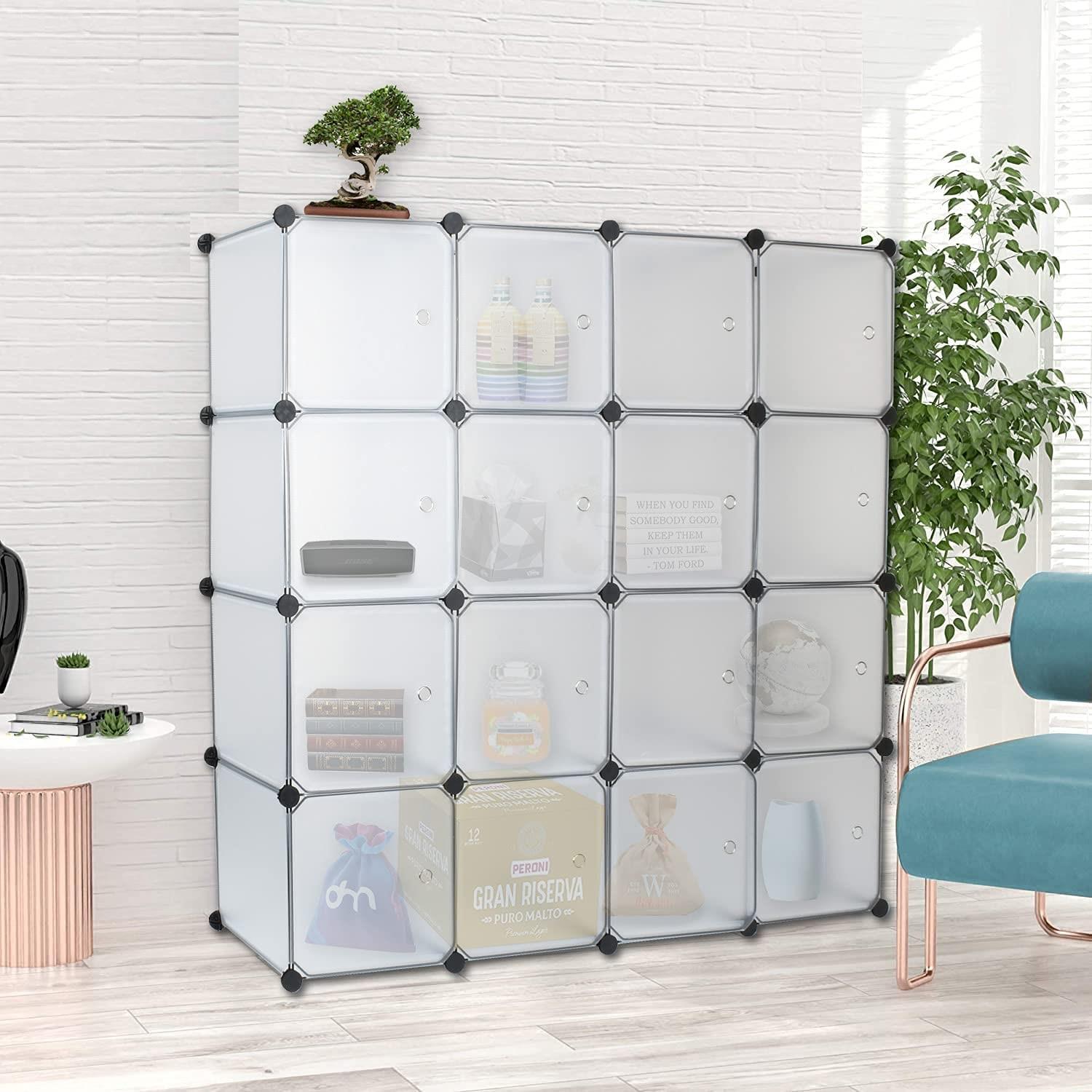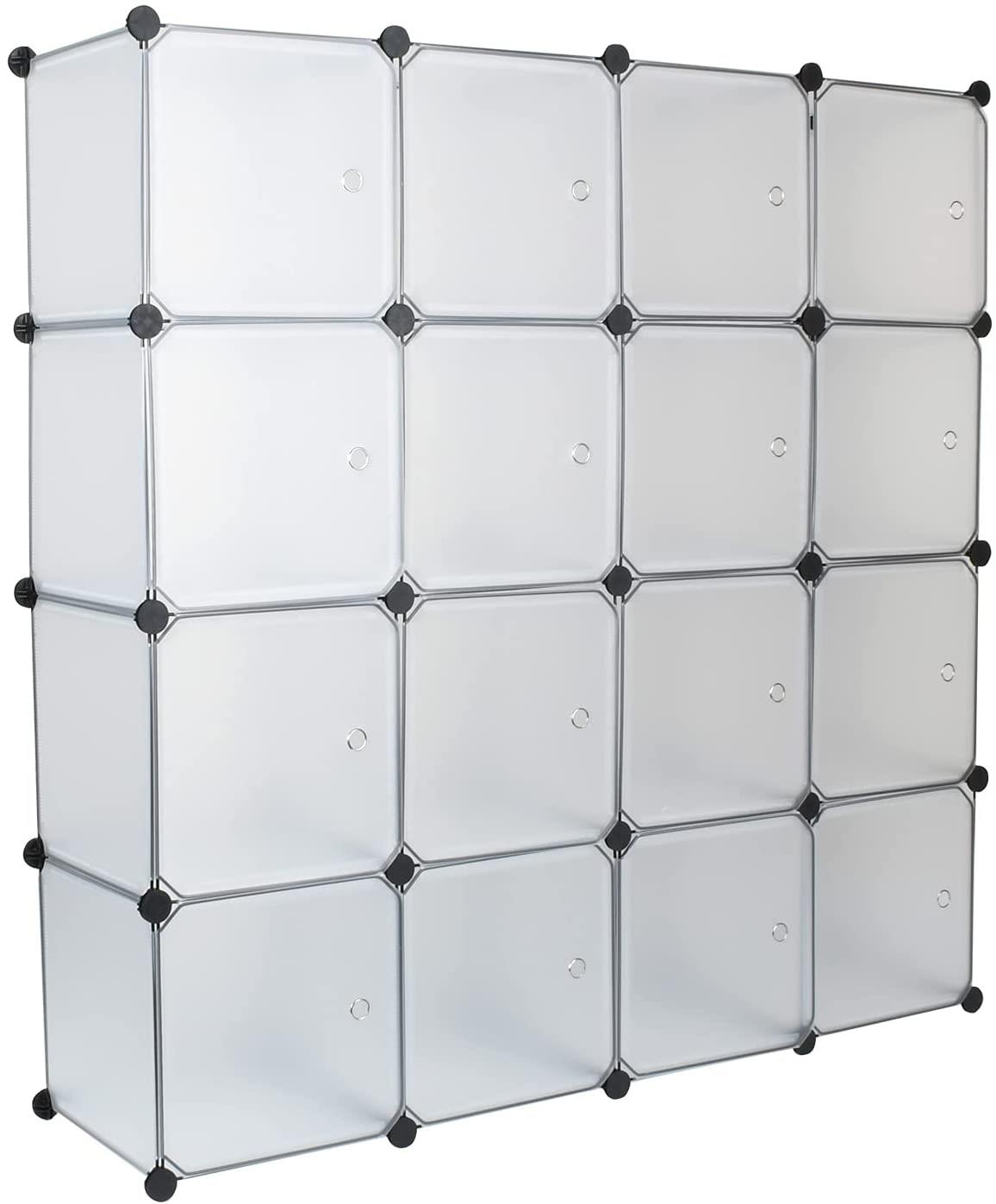 16 Cube Stackable Interlocking Storage Space Saver Wardrobe With Door