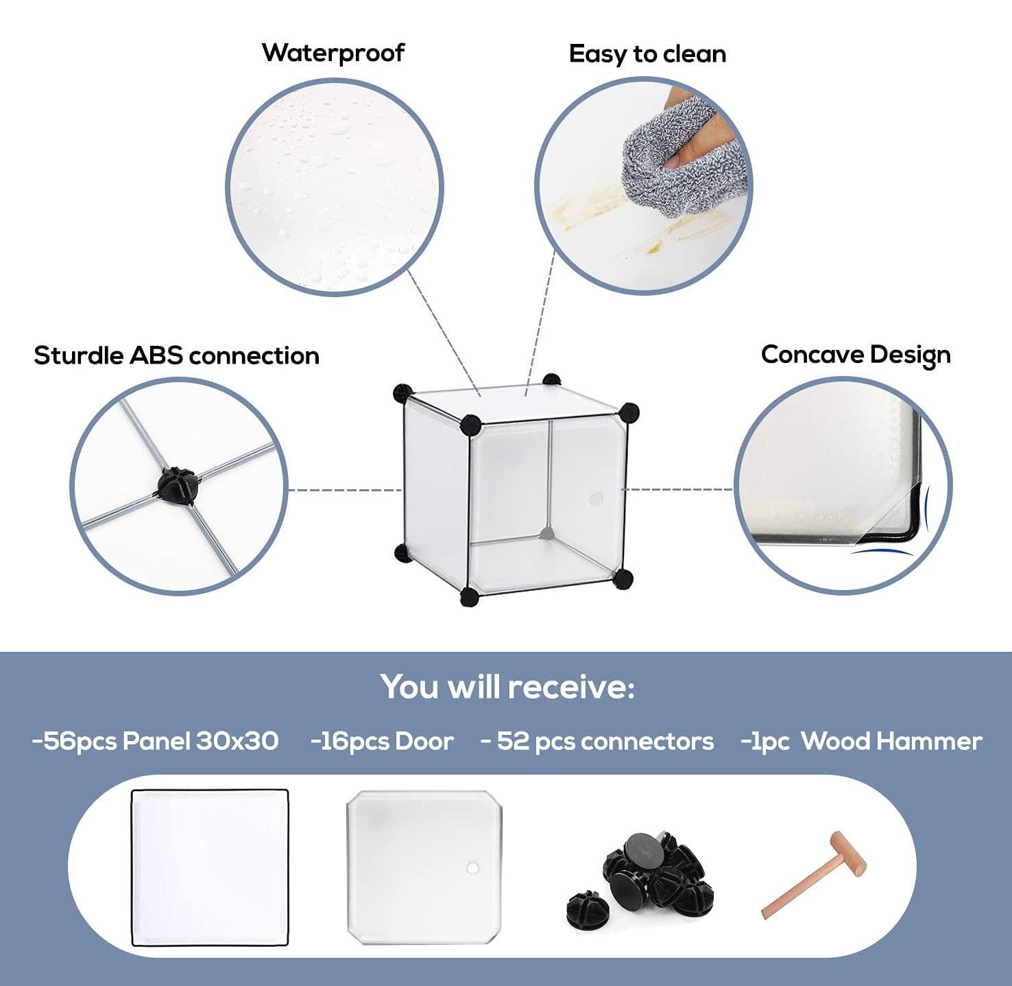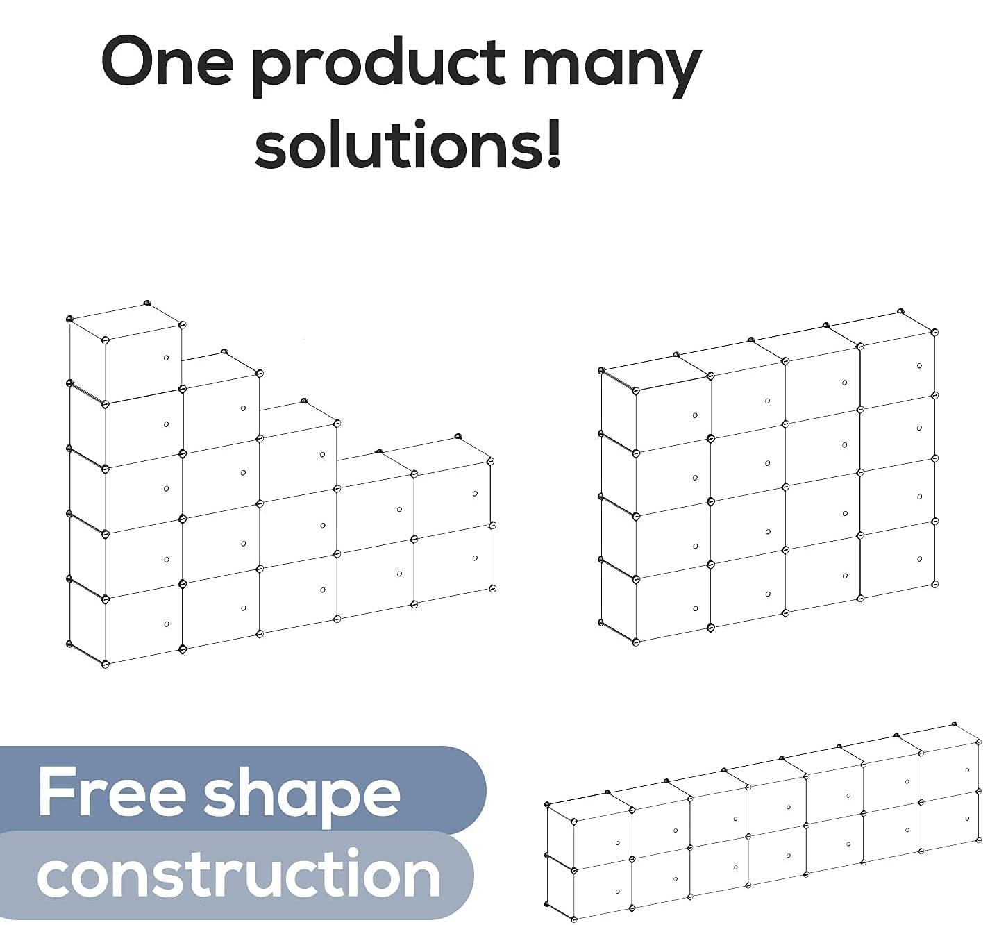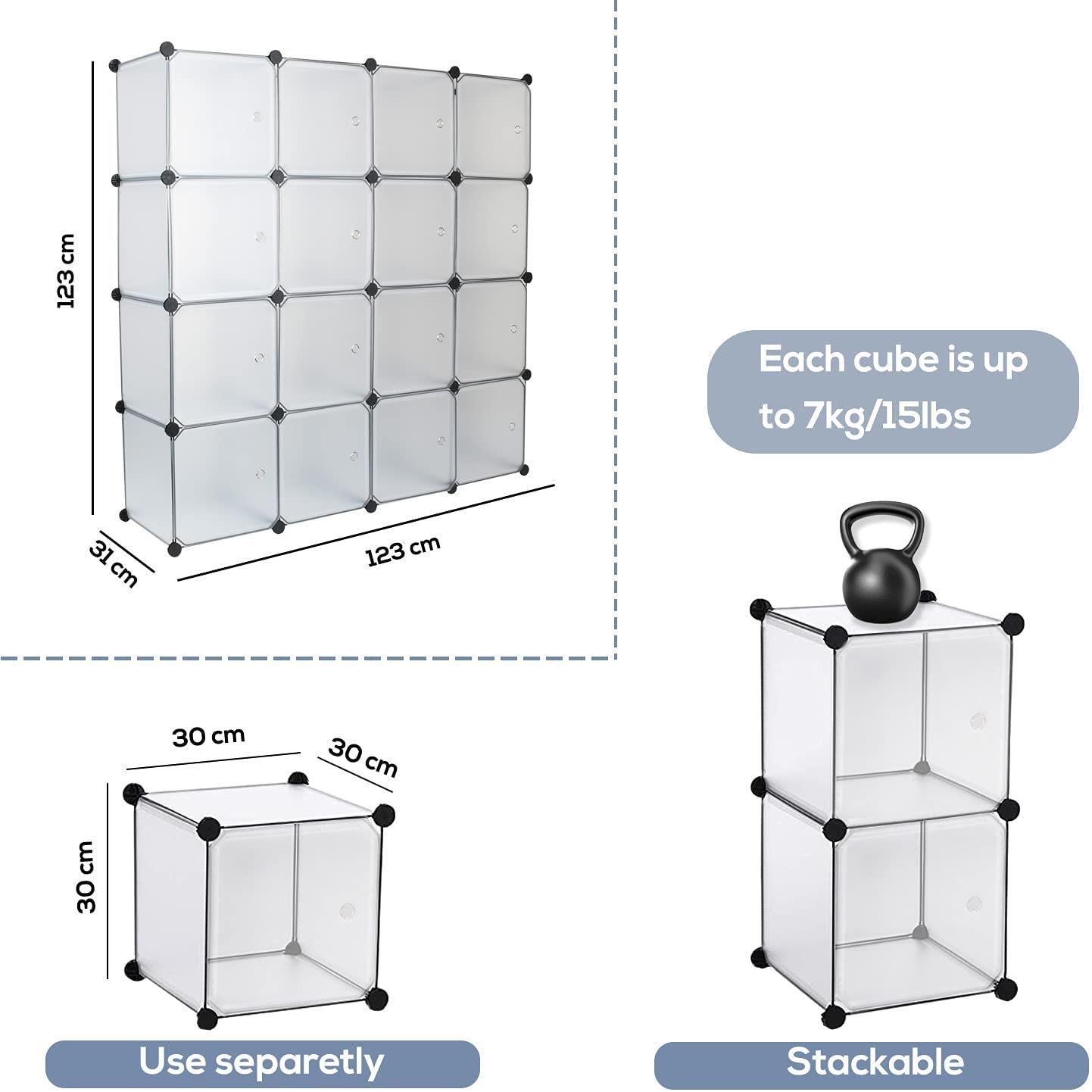16 Cube Stackable Interlocking Storage Unit Shoe Rack | Space Saver Unit | Wardrobe With Door Standing Organiser For Clothes Shoes Toys Books Rubber Mallet Included | Corner Cupboard Shelf