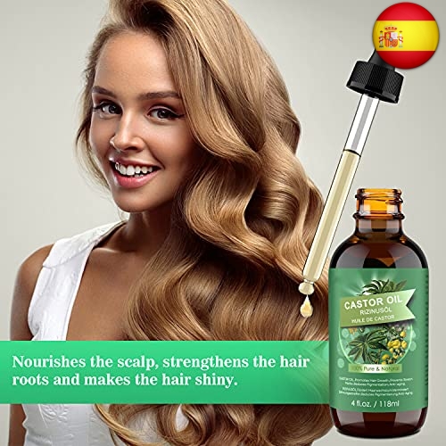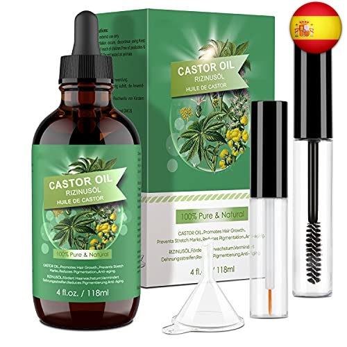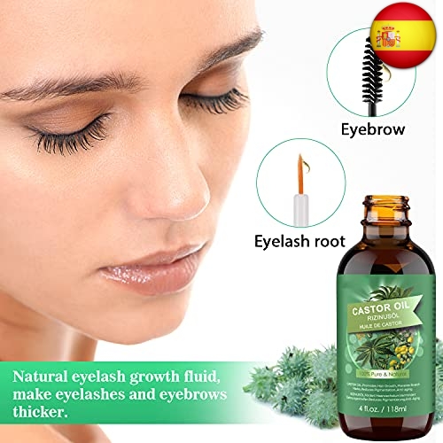 Aceite de Ricino 100% Puro - 118 ML de Aceite de Ricino Prensado en Frío Estimula el Crecimiento del Cabello, las Pestañas y las Cejas, la Barba, las Uñas, el Cuerpo y el Rostro