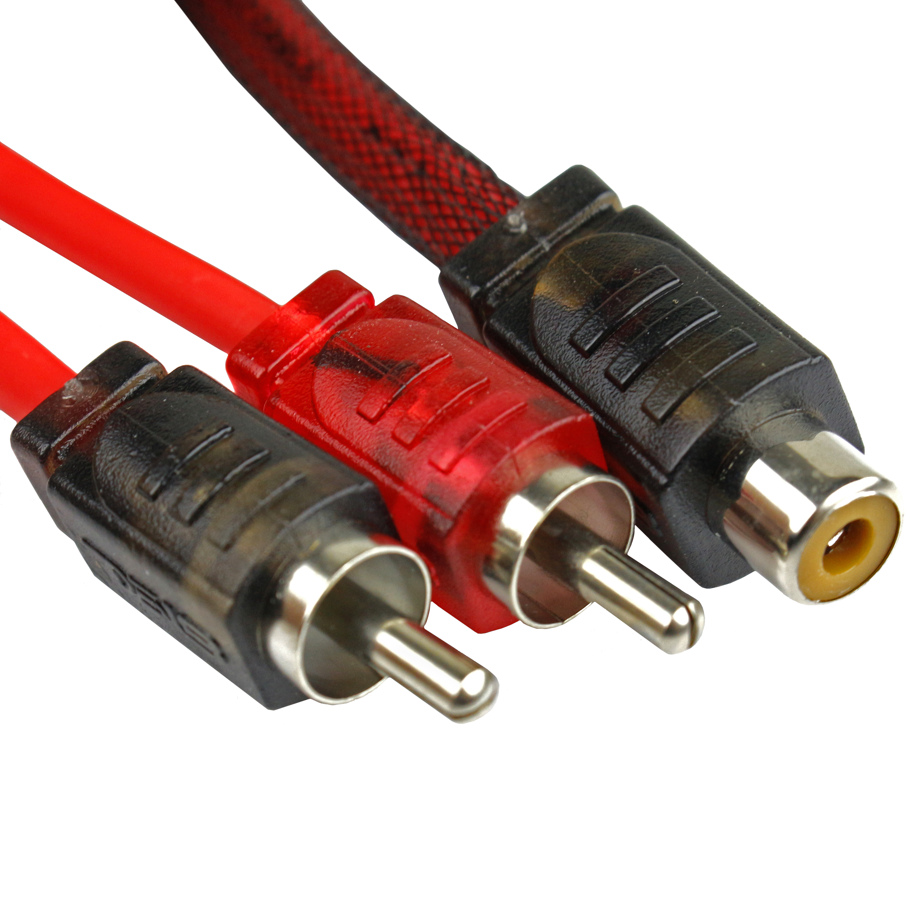 4 Pack DS18 R1F2M 1 Female/2 Male RCA Audio Cable guarantees professional audio quality RCA cables for premium left/right audio signal transfer from your home stereo or audio receiver. Oxygen-free copper and braided construction jacket made to last and extra durability. This cable provides supreme signal transfer and premium output from audio components and can easily split existing audio components for an authentic surround-sound experience. Connect a TV, CD/DVD player, or another RCA-enabled device to the audio ports (left and right) of a subwoofer, amplifier, or Audio/video (a/V) receiver.