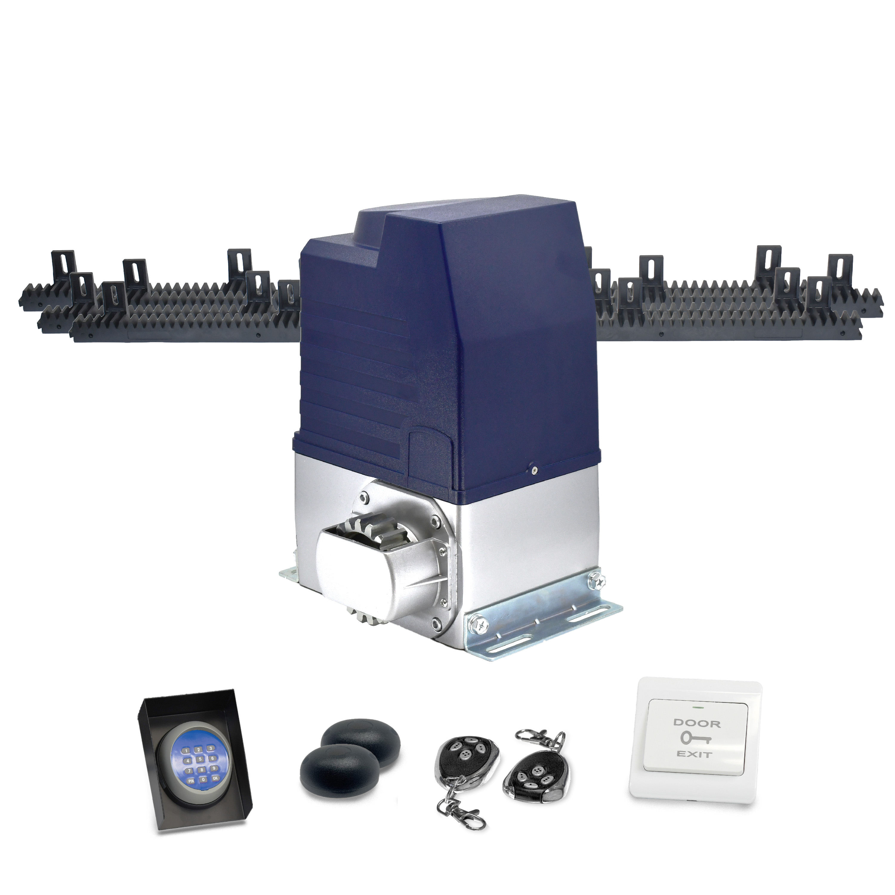 Included: Gate Opener unit, Set of 6 Nylon Gear Racks 3.3 Ft each (if your gates more 18 ft in length just purchase an extra racks), Mounting Metal Plate, 2 Remotes, Accessories kit- Photo Cells/ Wired Push Button/ Wireless Keypad, Mounting hardware, Manual with step by step instructions