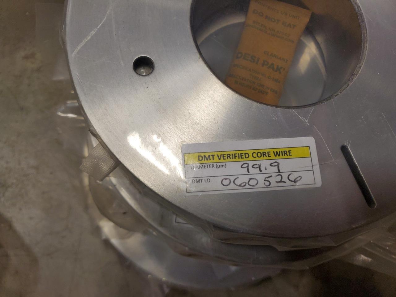 The composition is proprietary, but in its current state it is similar to a brass coated EDM wire. We have many sizes available between 100 and 400 microns. Please specify. Each spool contains 1 km of wire. These have been in storage since they were manufactured, but are new and sealed as shown. Buyers are welcome to specify any diameter between 100 and 400 microns. We do not have every diameter, but have quite a variety within that range.