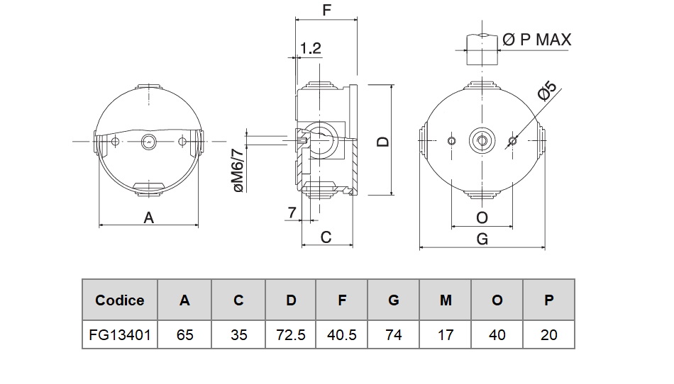 | Dimensioni | Ø65x35mm |