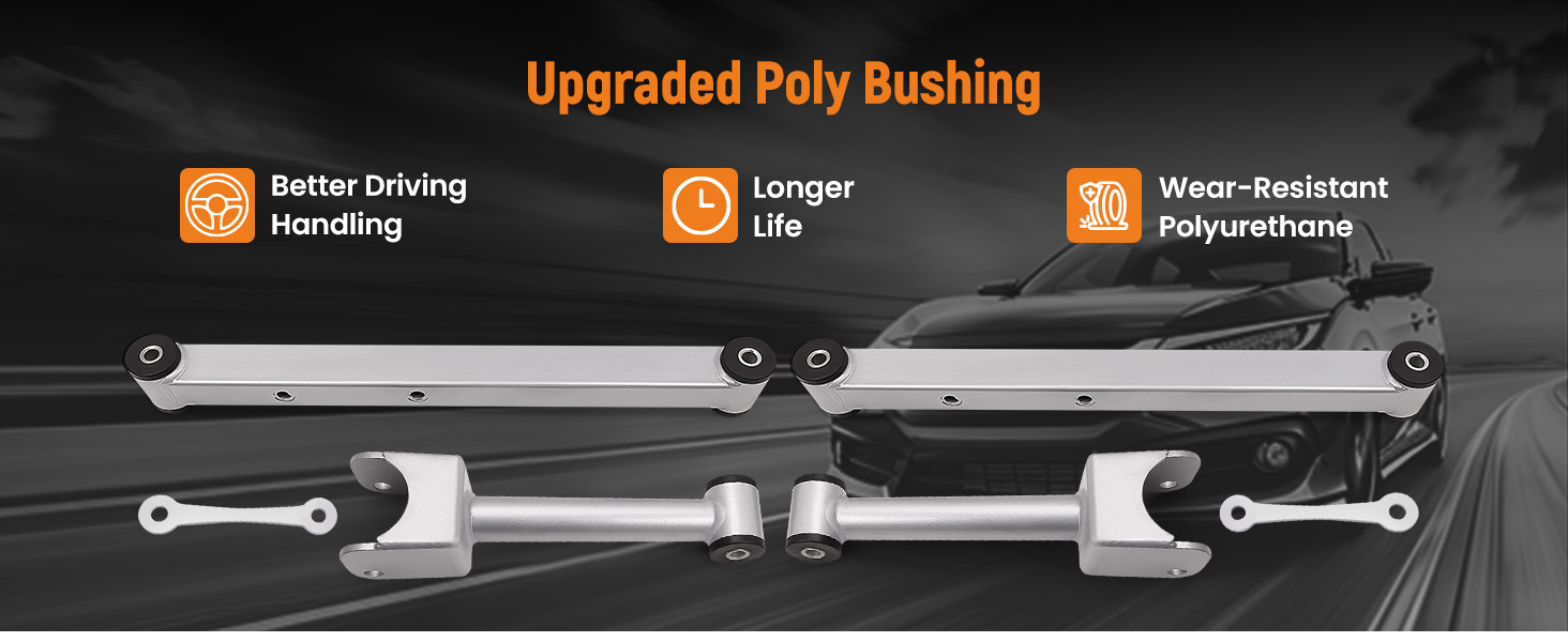 Polyurethane bushing is very wear-resistant and improves handling. Suitable for heavy-duty or extreme condition vehicles.Poly bushings bring fast response and last long.