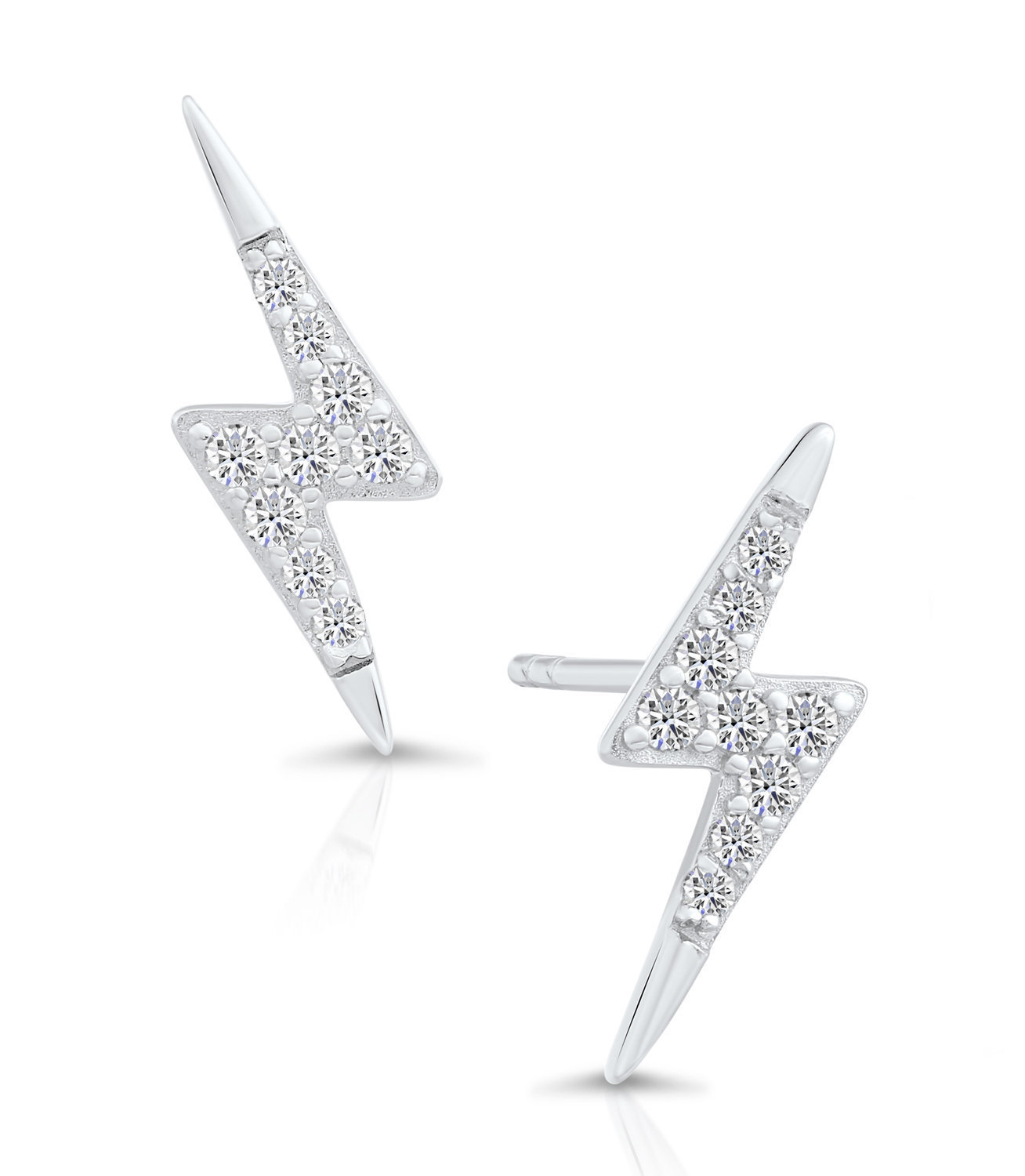 Our tiny Pave Lightning Studs are handcrafted in sterling silver and set with super clear white zirconia shimmers for extra shine like a diamond. They're high polished by hand and easy with high-impact shine bright like white gold.