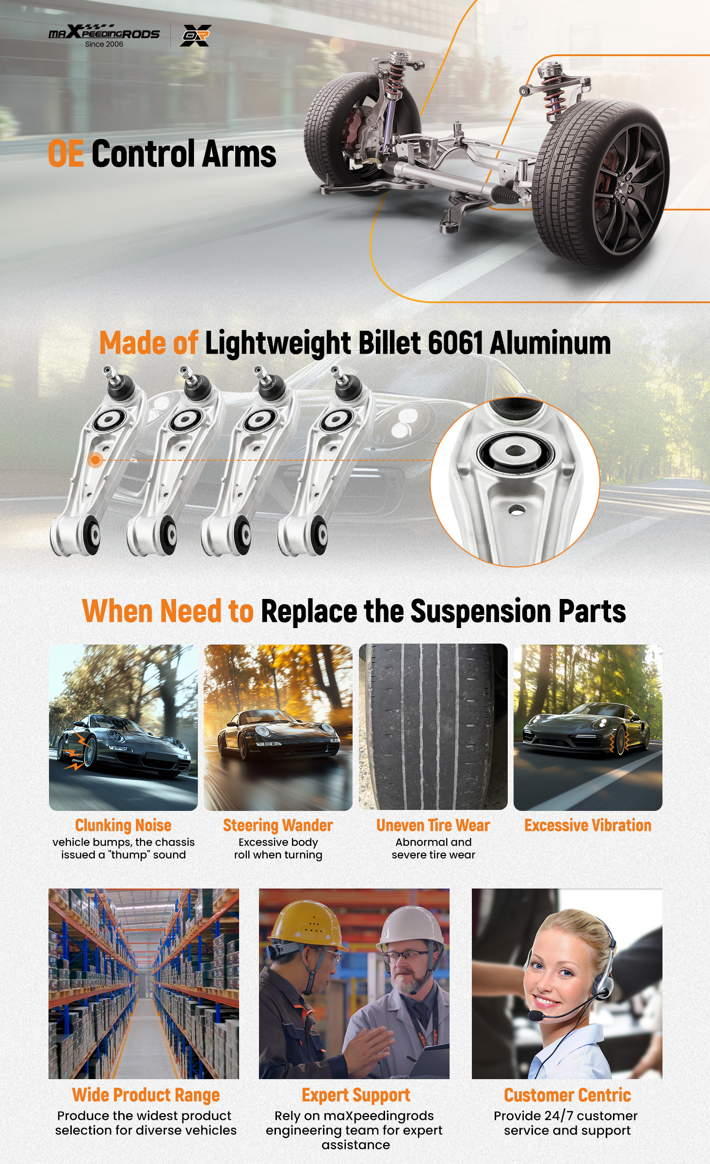 - Premium Components: Includes premium ball joints and high-quality rubber bushings for superior performance
