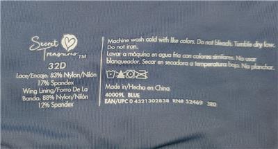 Lace: 83% Nylon, 17% Spandex. Wing Lining: 88% Nylon, 12% Spandex.