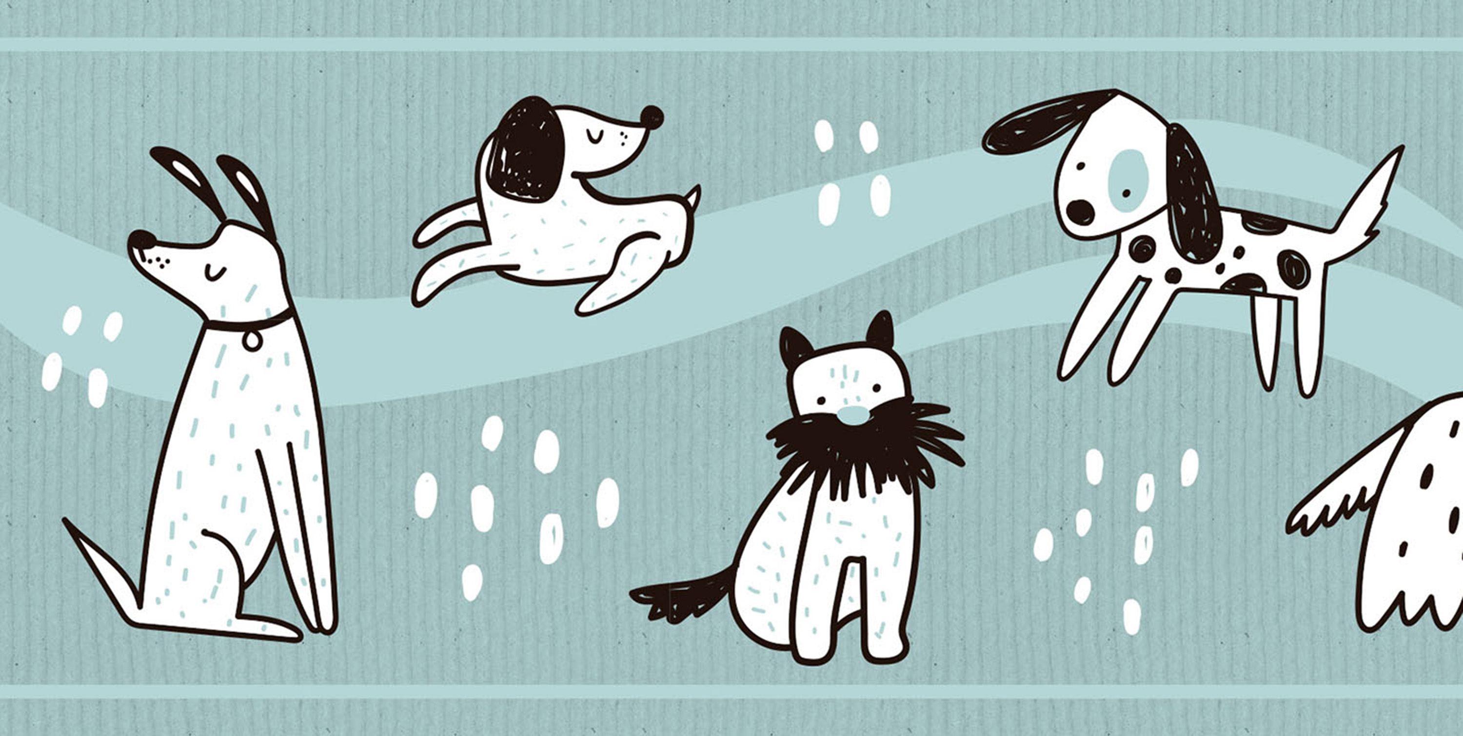 GB90190g8 Grace & Gardenia Hand Drawn Dogs Peel and Stick Wallpaper Border 8in Height x 18ft Long, Blue White Black