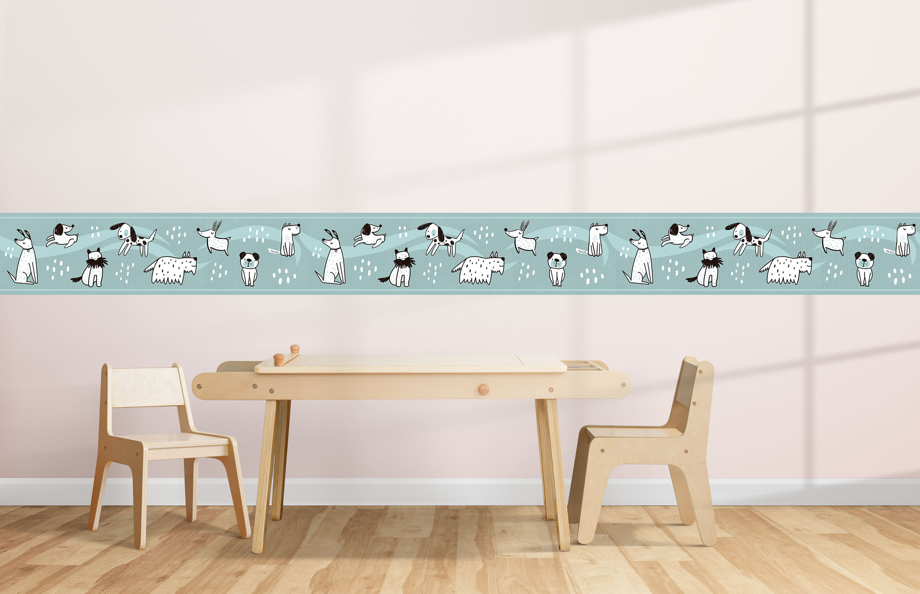 Wallpaper borders are the element that can completely make or break the look of a room. Border can transform a room, lifting it to a fun style, so do it with our beautiful wallpaper borders. This is the perfect wallpaper for Dog lovers everywhere.