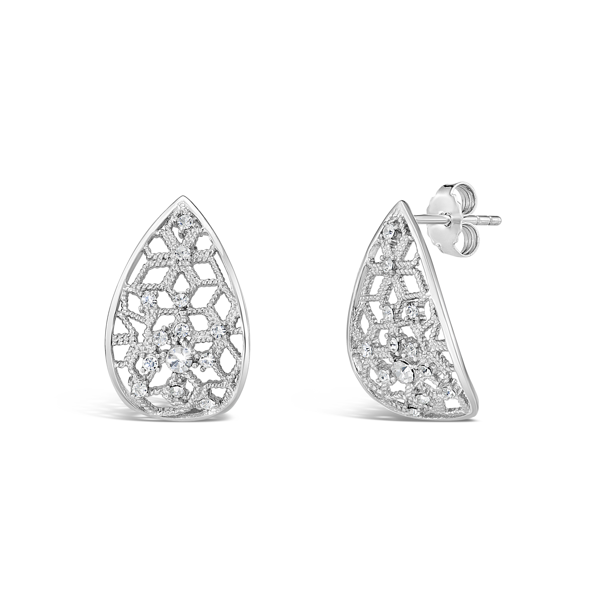 These stud earrings are handcrafted in sterling silver and set with white zirconia shimmers for extra shine. They're high polished by hand and easy with high-impact shine bright like white gold.
