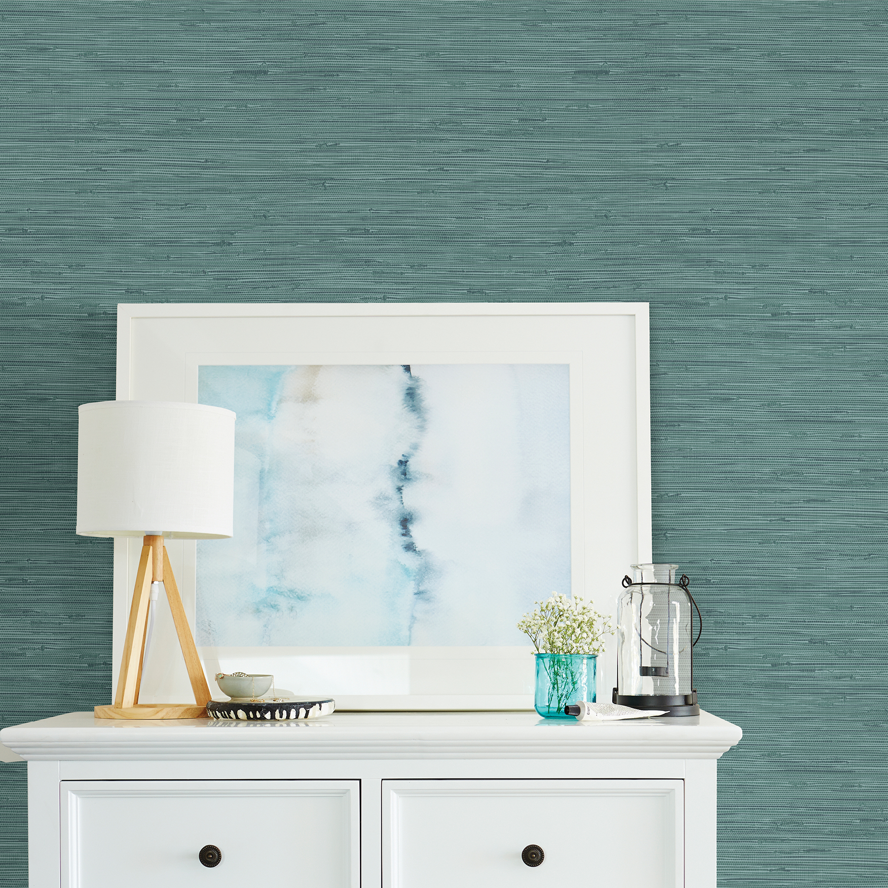 Bold and rich, this vibrant teal wallpaper is perfect for adding dimension to walls. Its textured, weave pattern gives it an organic look, while metallic details add a touch of glamour. Lycaste is an unpasted, non woven wallpaper.