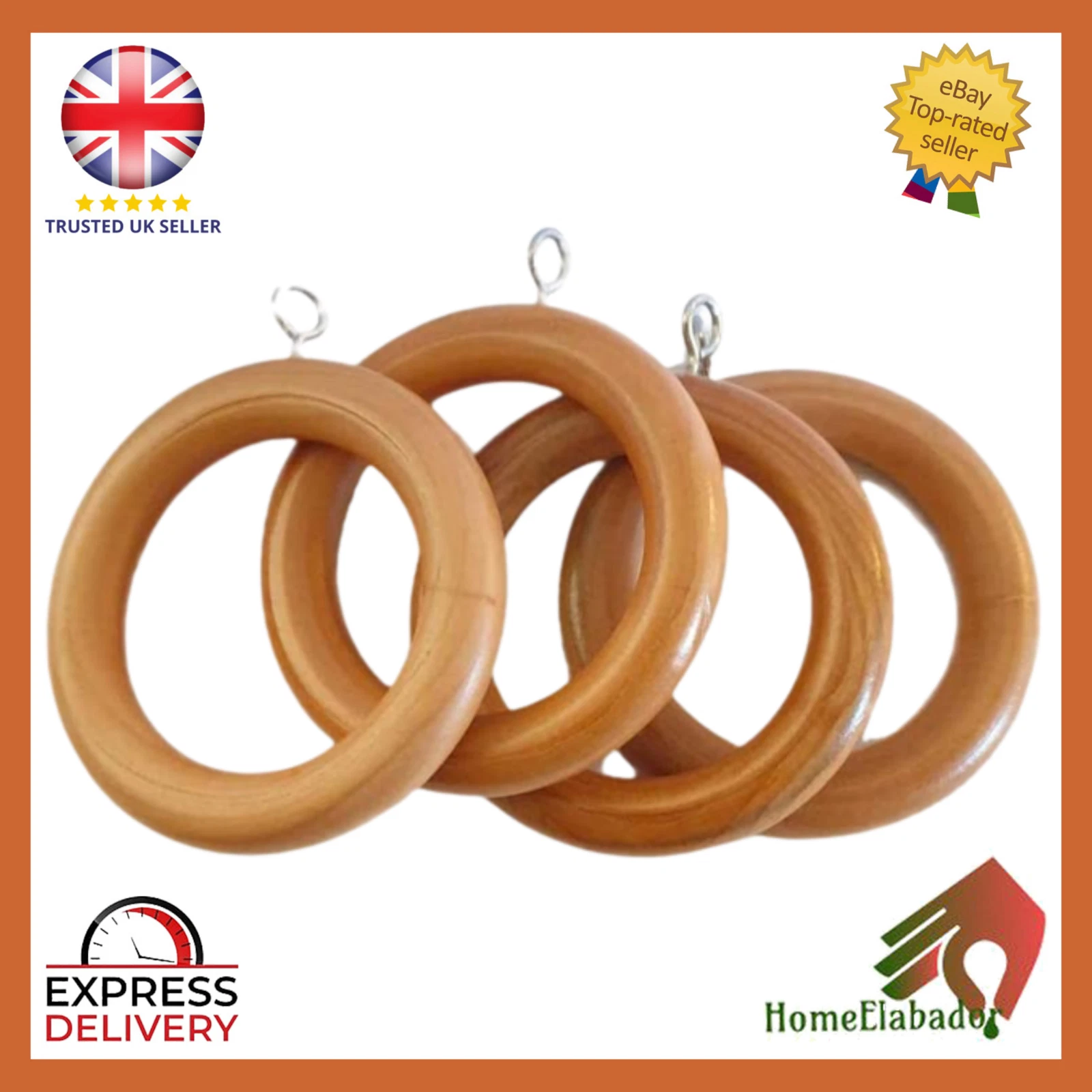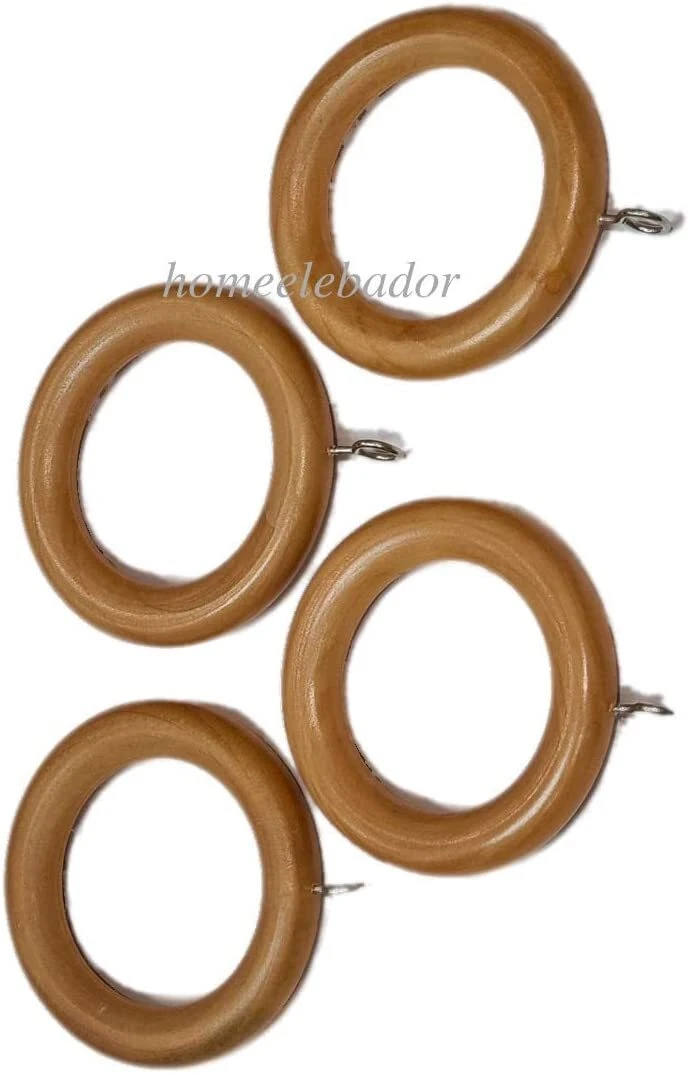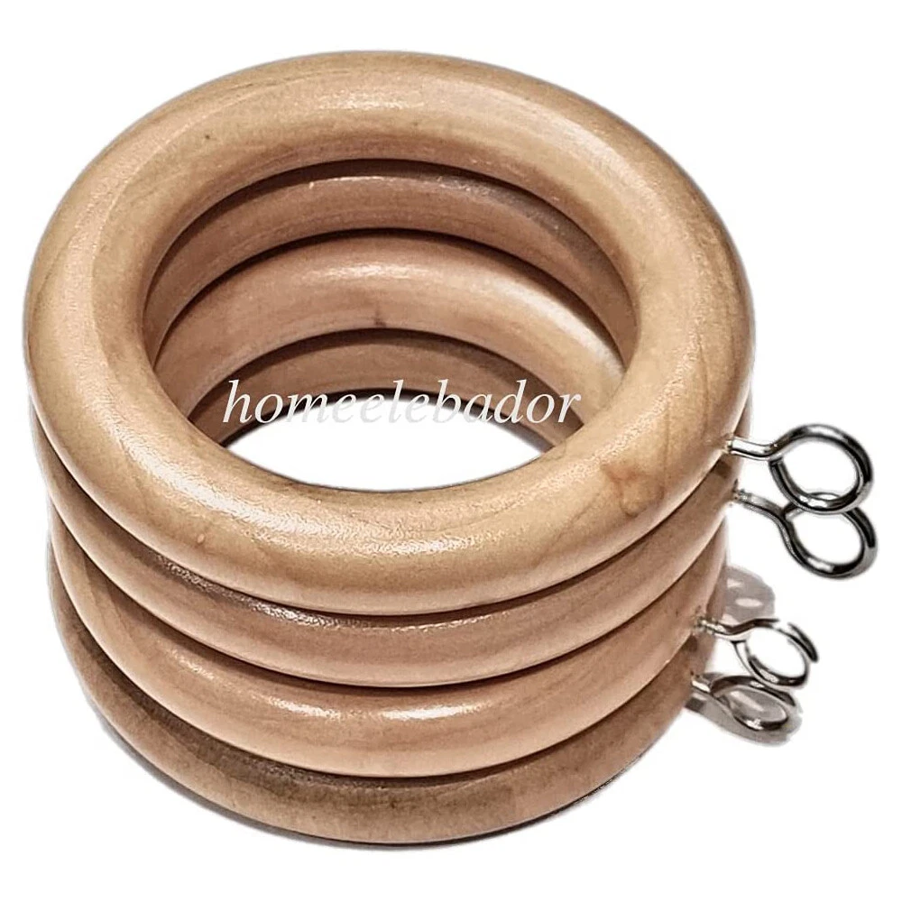Natural Wooden Curtain Rings 35mm with Heavy-Duty Screw Eye Hooks Assorted Pack