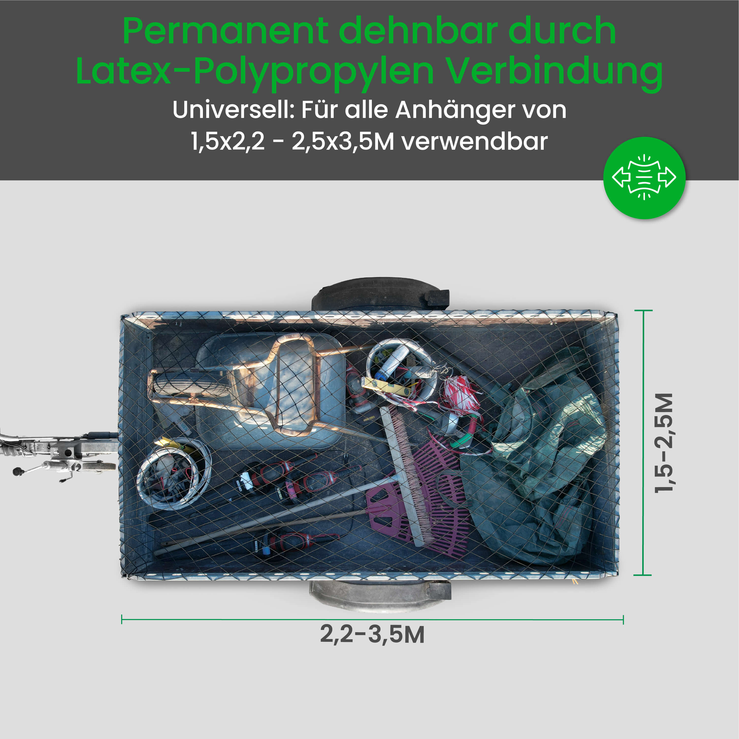 Anhängernetz dehnbar auf 2,5x3,5M Abdecknetz Hängernetz Transportnetz schwarz