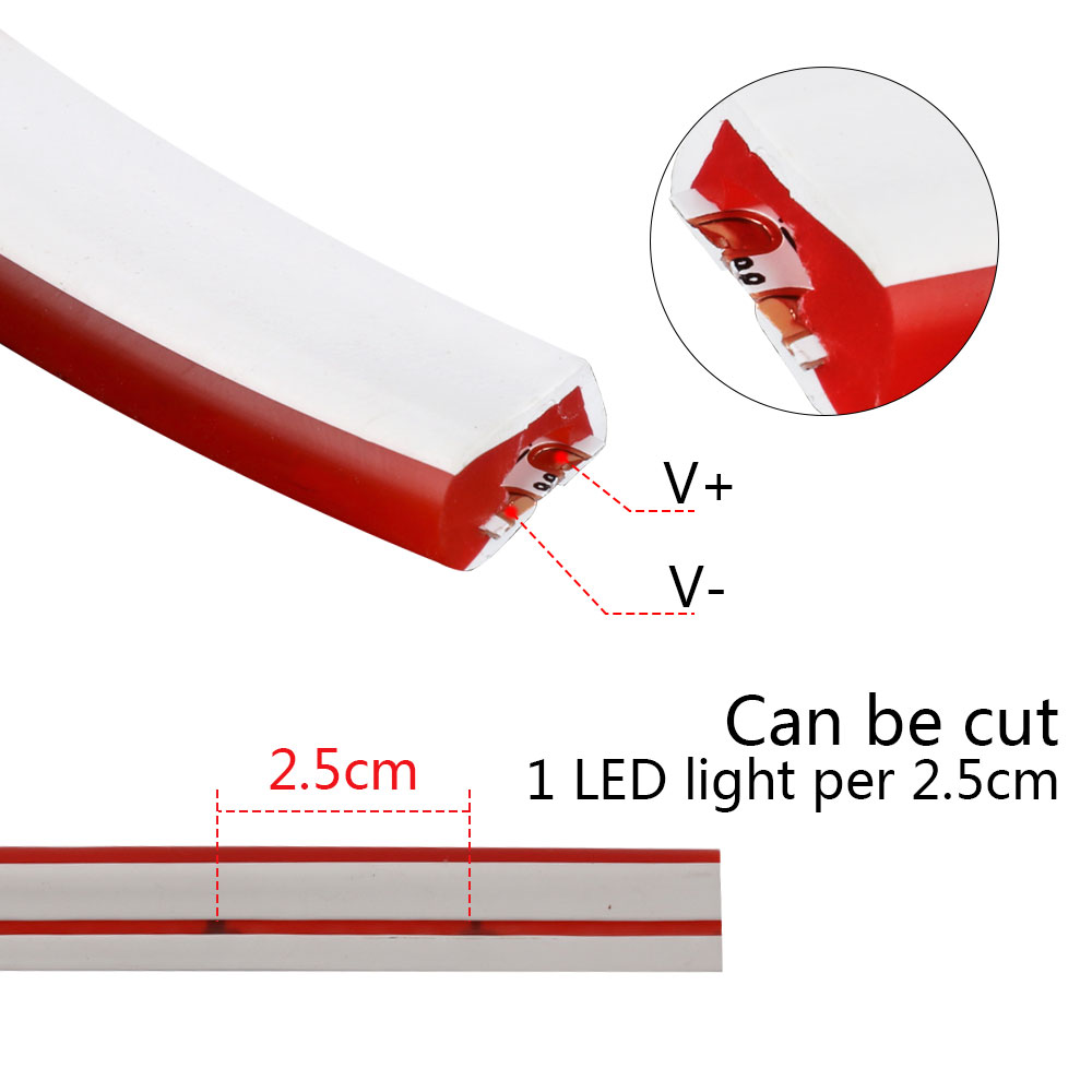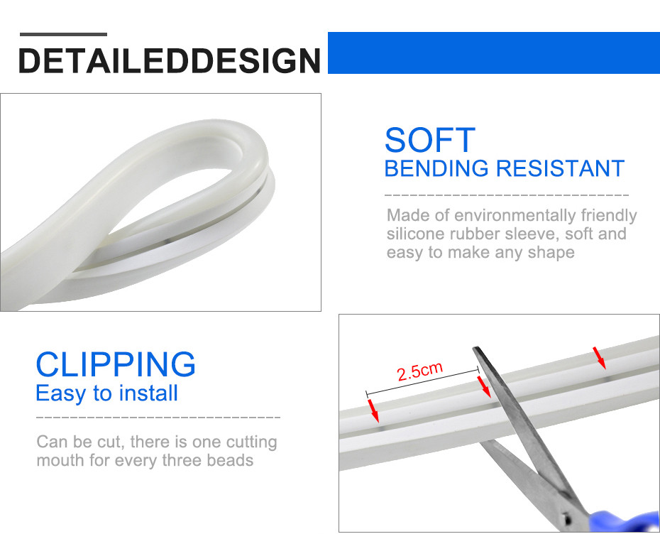 Cuttable neon rope lights, 2.5cm(0.98in)per cut, please buy extra silicone glue to stick our lights on anywhere you like, 360 degree bendable, you could cut to DIY special residential decoration/design unique commercial sign.