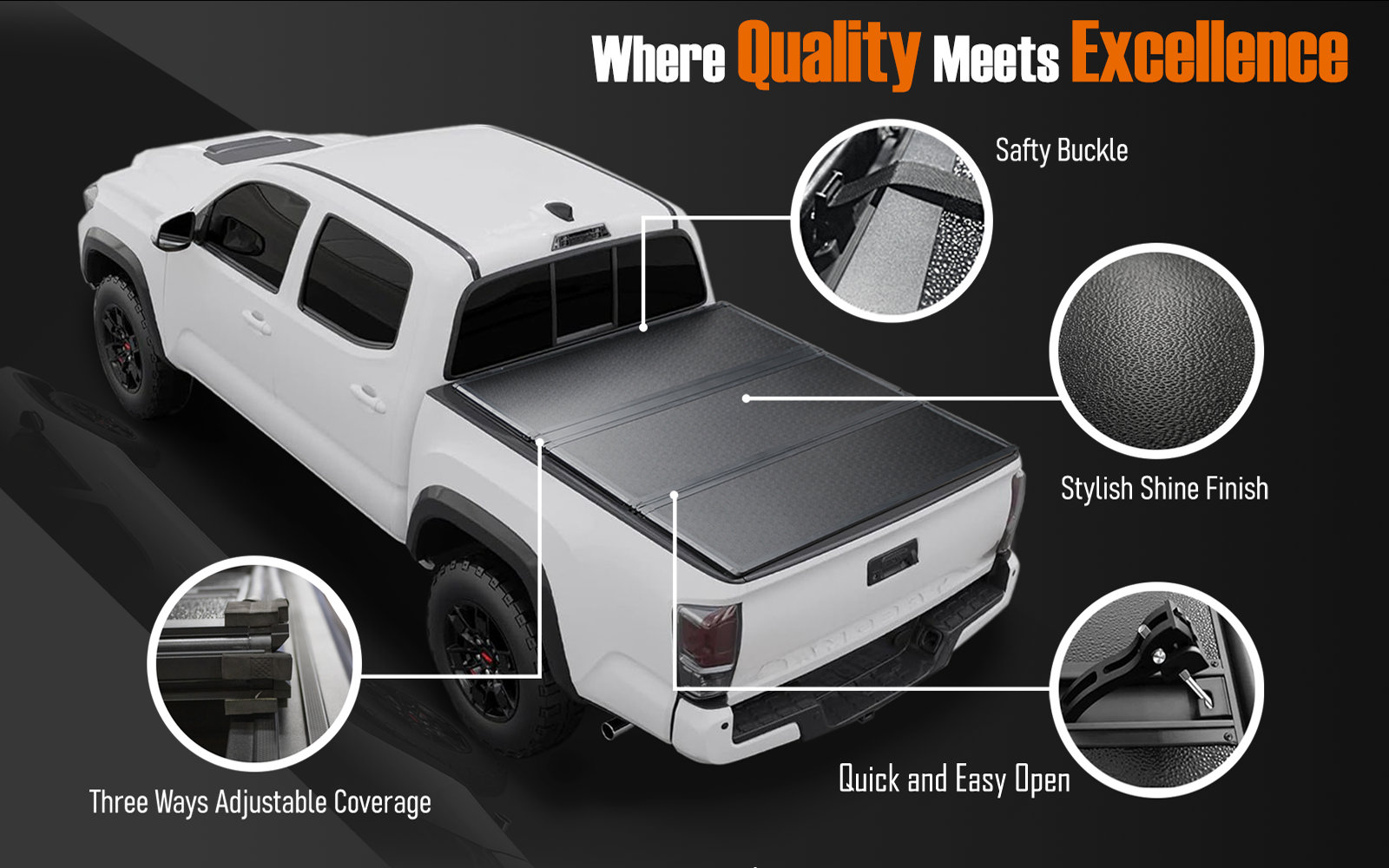 Truck Gear Nation warrants its Hard Tri-Fold Tonneau Covers to be free from defects in materials and workmanship for 3 years.