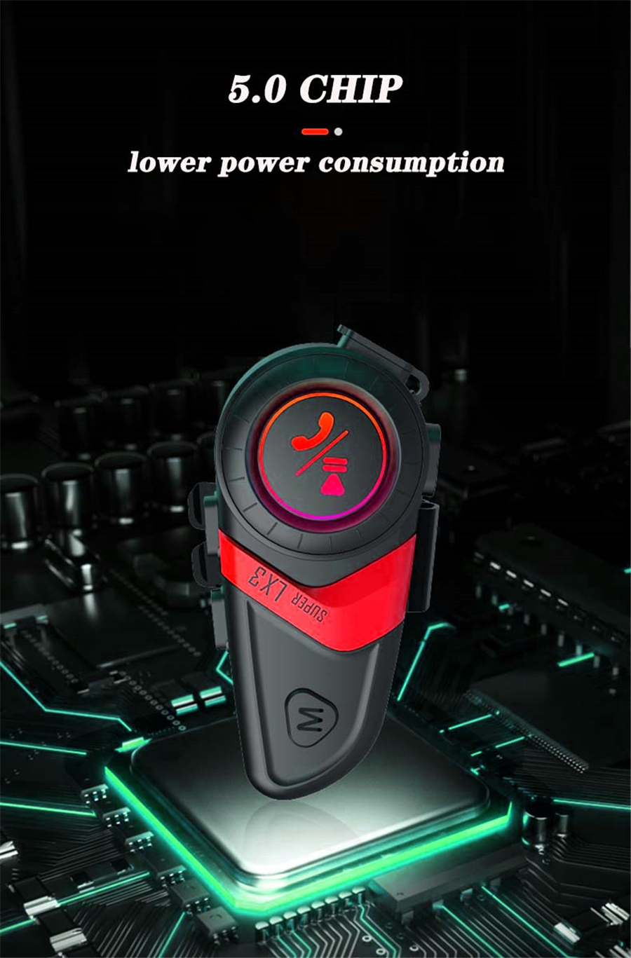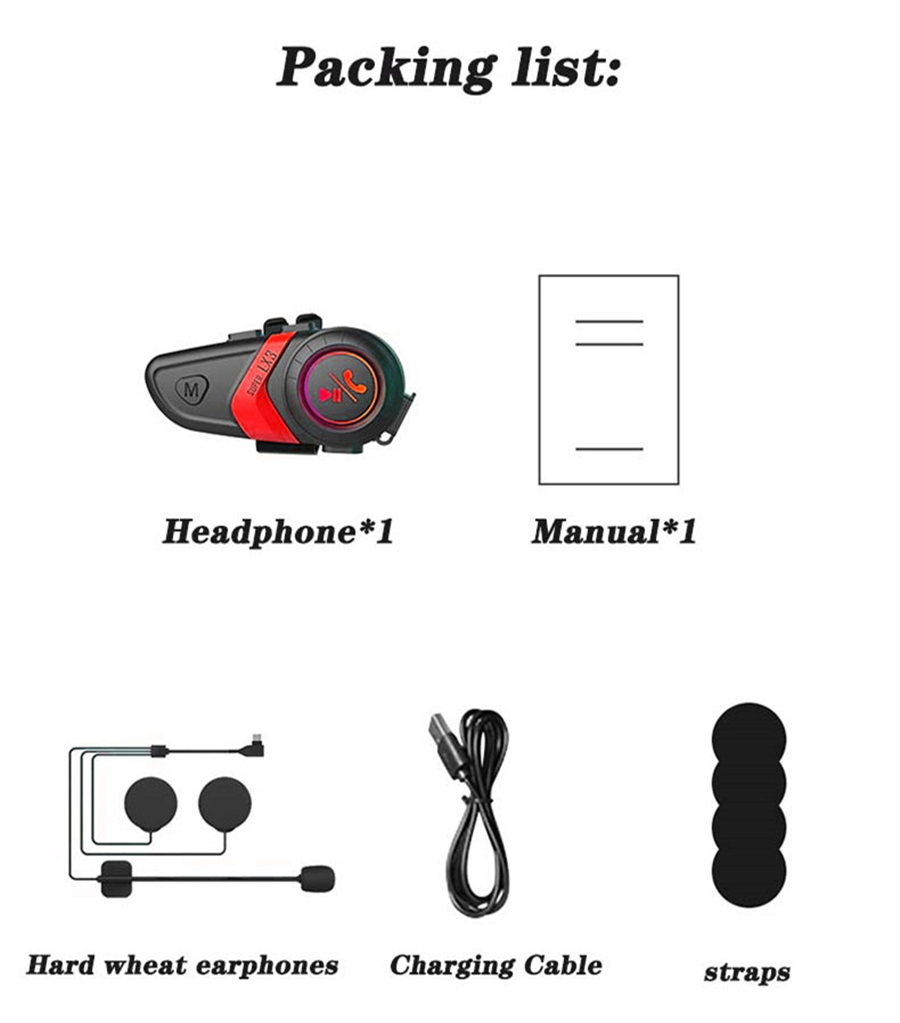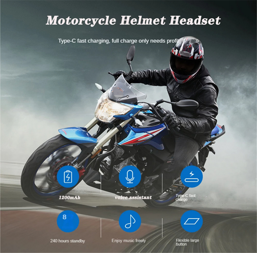 LX3 Helmet Bluetooth Headset 1200MAH Motorcycle BT5.0 Wireless Hands-Free Call Stereo Anti-Jamming Waterproof Headset