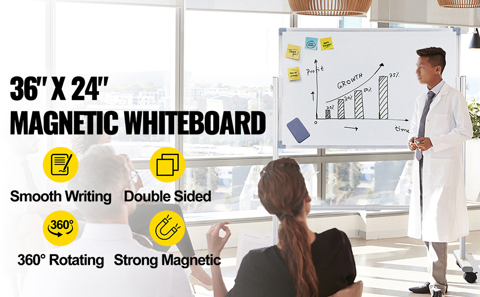 Our whiteboard rotates a full 360 degree and can be firmly locked. double-sided writing makes more convenience.
