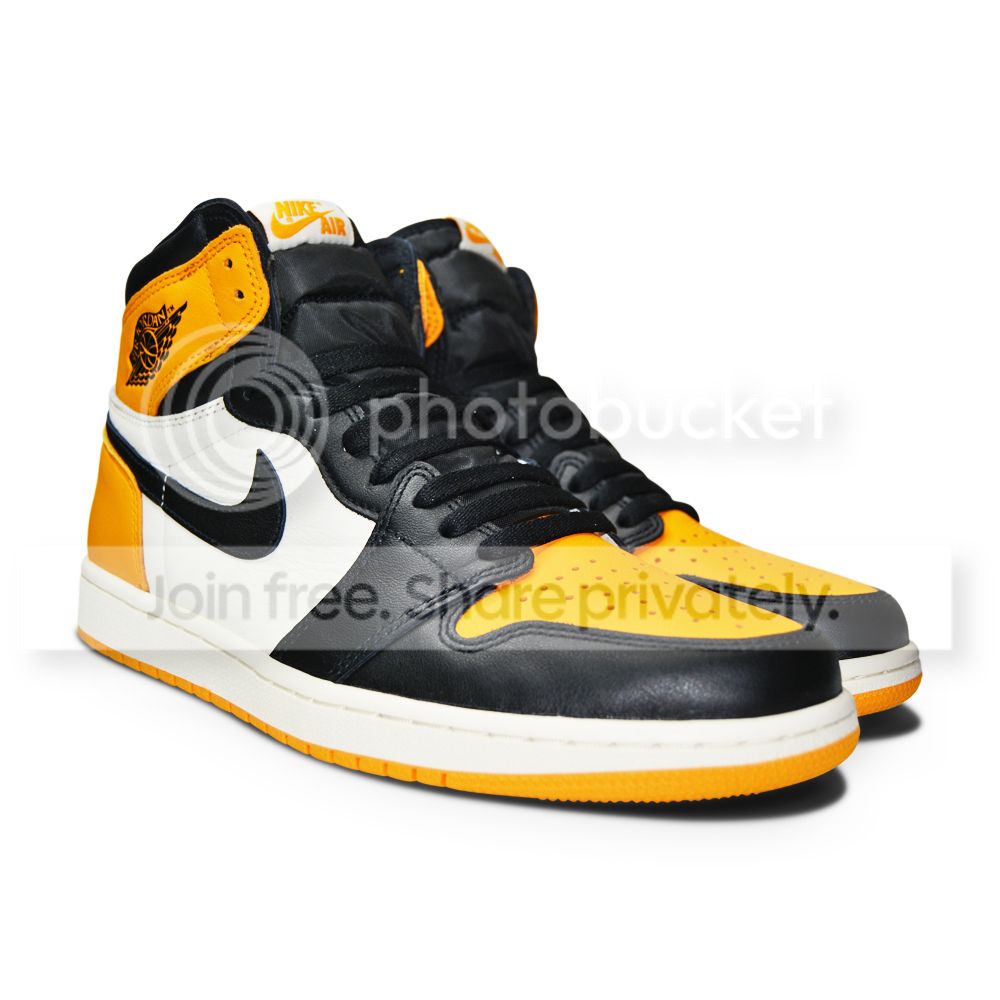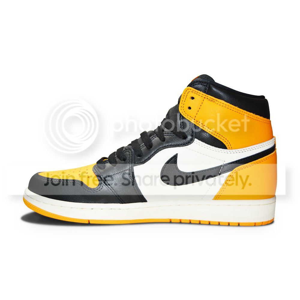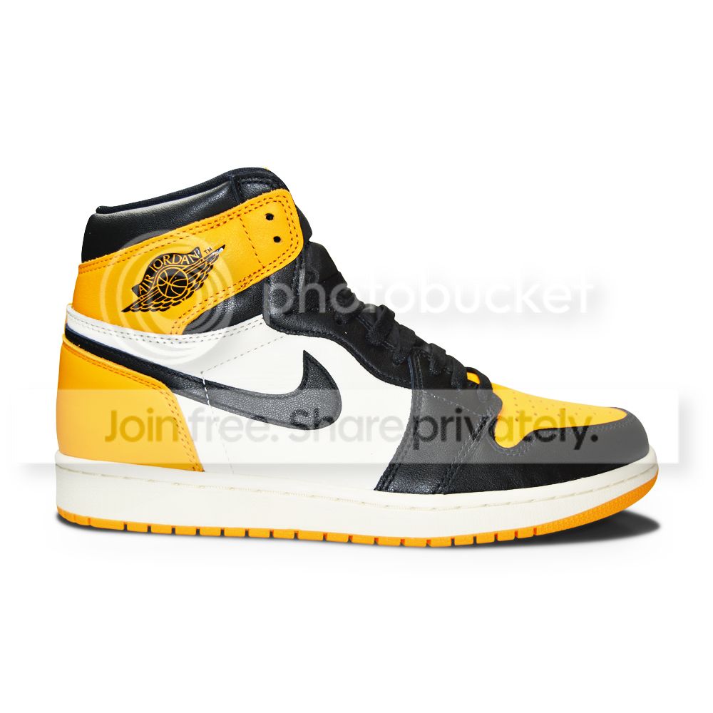 Dressed in a Taxi, Black, and Sail color scheme. This offering of the Air Jordan 1 comes in the classic “Black Toe” style blocking. Instead of University Gold that was used on the Shinedown Sample, these will feature Taxi Yellow contrasting accents inspired by the Air Jordan 12. A White midsole atop a Yellow rubber outsole completes the design.