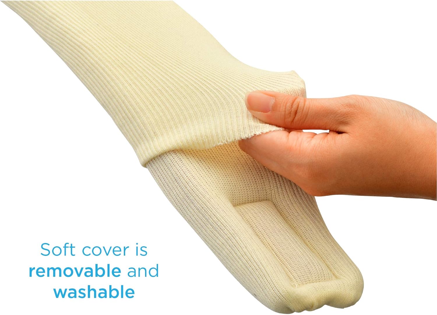 It's ribbed stockinette cover promotes air circulation, reduces perspiration and heat build up.