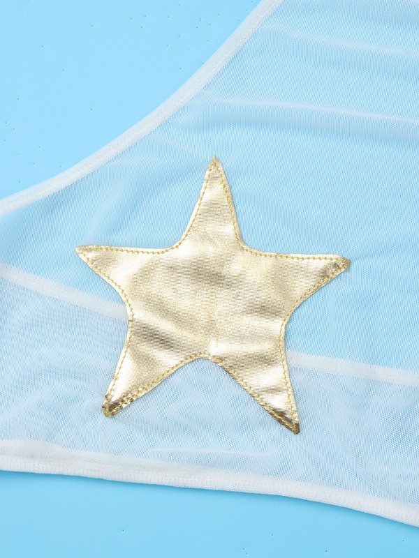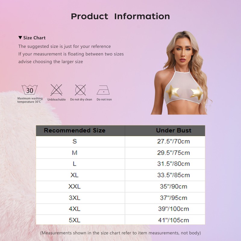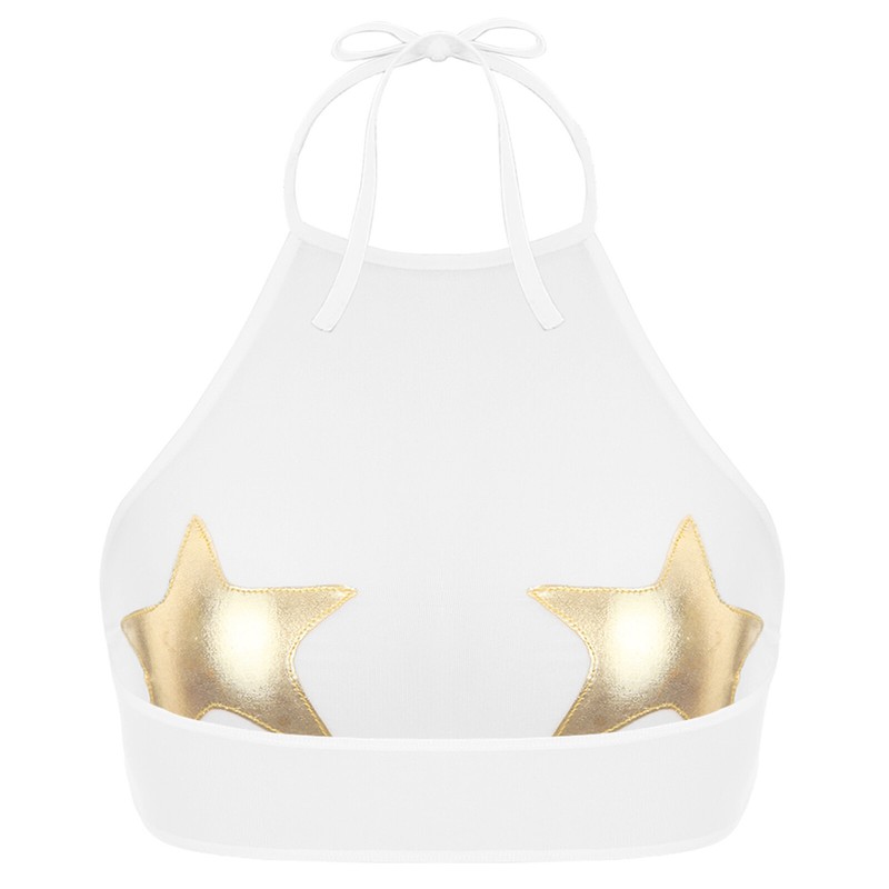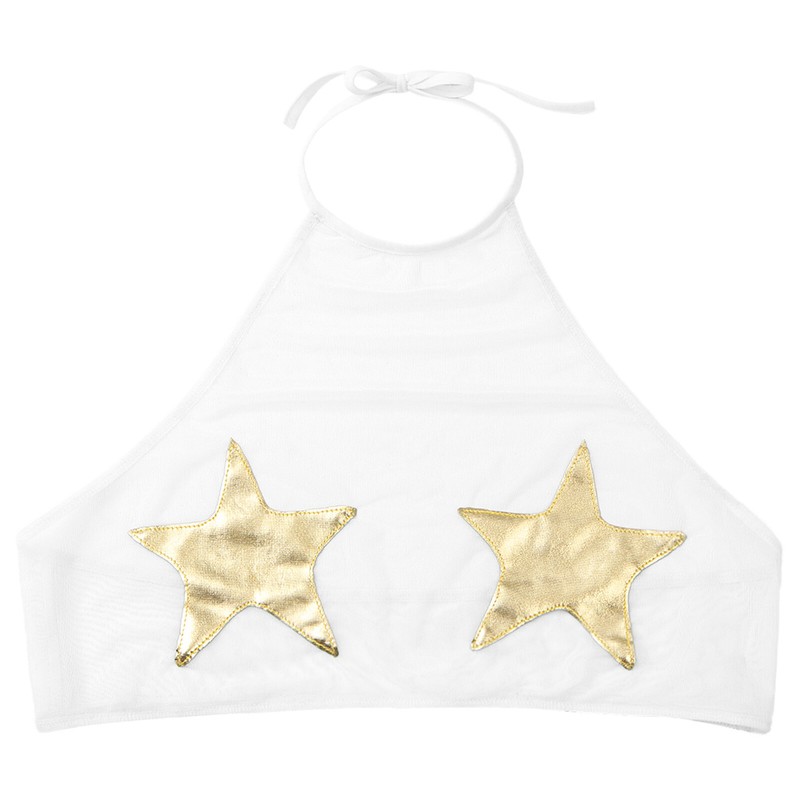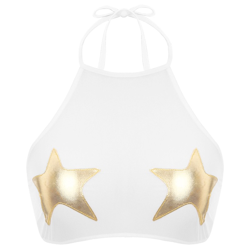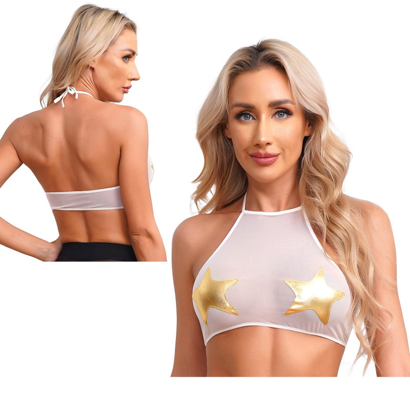 Halter self-tie crop top with metallic star applique, cover your private parts and makes you look hot and attractive.