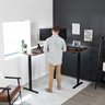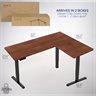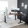 Enjoy a spacious workstation that accommodates an active work life with the Dark Walnut / Black 63" x 55" Corner Electric Desk (DESK-E3CTD) from VIVO! Periodically standing throughout the long work day can help relieve tension on the neck, back, and shoulders, as well as increase blood flow and reduce stress. Enjoy being able to stand up in seconds with this sturdy l-shaped desk featuring a single motor lift system for smooth height transitions, memory control panel for customizable settings, and solid legs supporting up to 176 lbs. All hardware and instructions are provided for assembly, so you can experience your own spacious work area that helps you stay organized and think on your feet!
