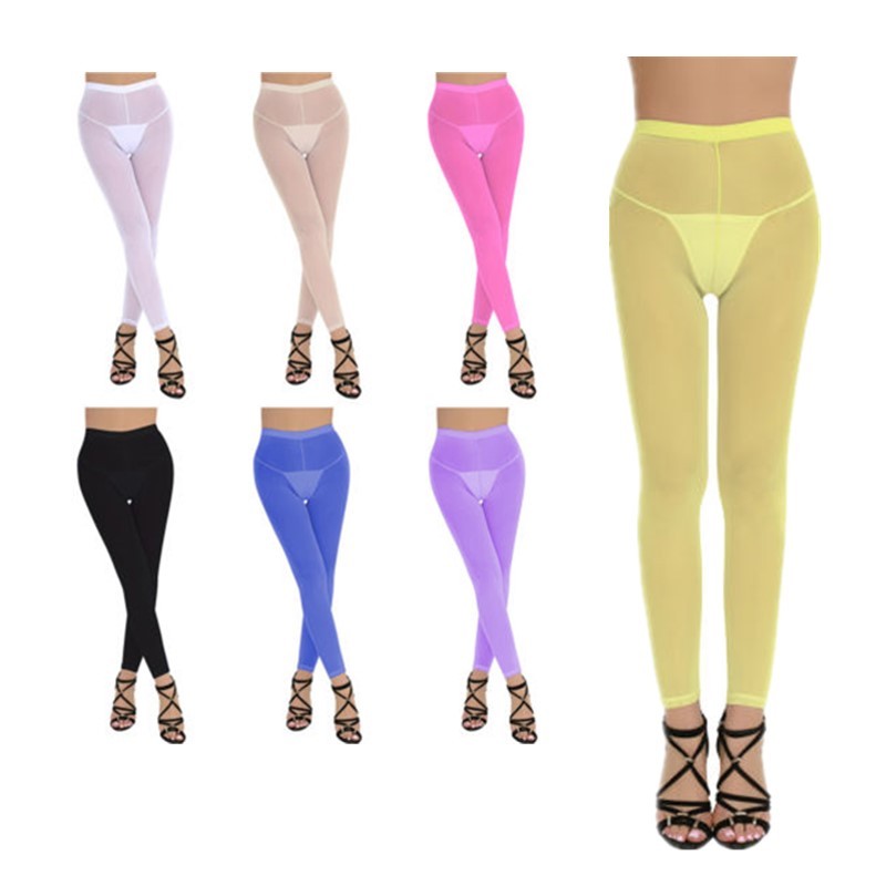 Women Hollow Out Stretchy Leggings Mid Glossy Elastic Waistband Skinny Pants Underwear Nightwear.