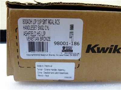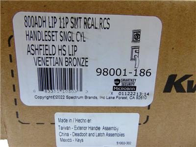 Kwikset 800ADH LIP 11P Smart Key Ashfield Single Cylinder Handleset Set - Venetian Bronze
